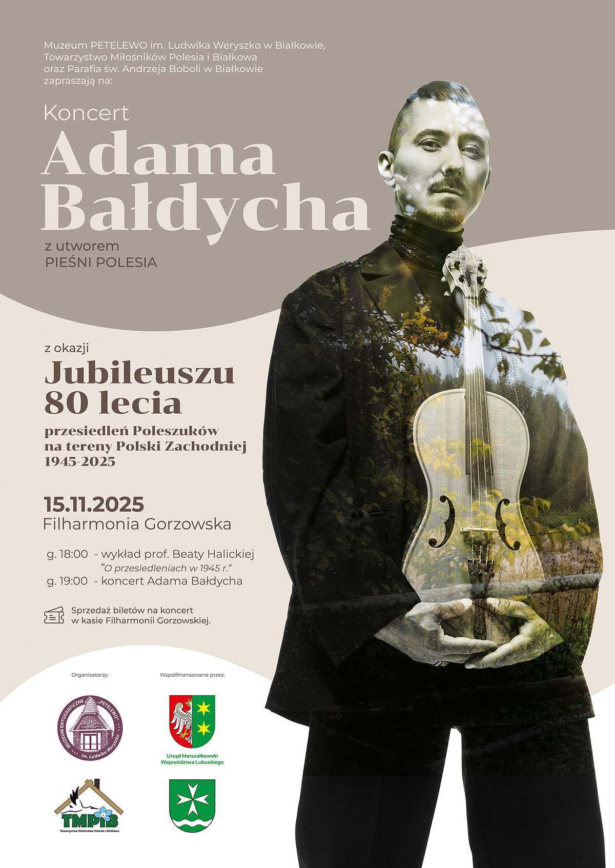 Koncerty odbędą się 8 listopada 2025 roku w Filharmonii Zielonogórskiej oraz 15 listopada 2025 roku w Filharmonii Gorzowskiej. Artysta zaprezentuje premierowy utwór – suitę „Pieśni Polesia”, skomponowaną specjalnie na tę okazję. Występy będą kulminacyjnym punktem obchodów 80-lecia przesiedleń Poleszuków na Ziemie Zachodnie, stanowiąc muzyczne świadectwo przywiązania ich potomków do polskości i rodzinnych korzeni.