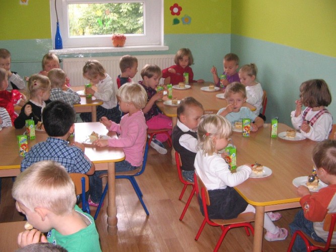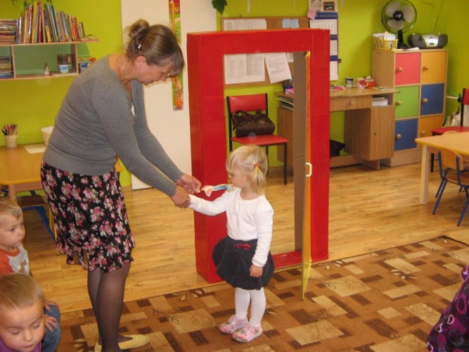 Po pasowaniu przedszkolaki odcisnęły swoje dłonie na słoneczku, które zawiśnie w sali. Otrzymały też drobne upominki – jajko niespodziankę oraz balonik. Miły akcentem było wykonanie przez dzieci pierwszej piosenki, której się nauczyły w przedszkolu pt. "Jestem sobie przedszkolaczek". Na koniec wszyscy mieli okazję spróbować okolicznościowego torta.