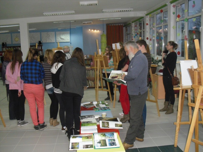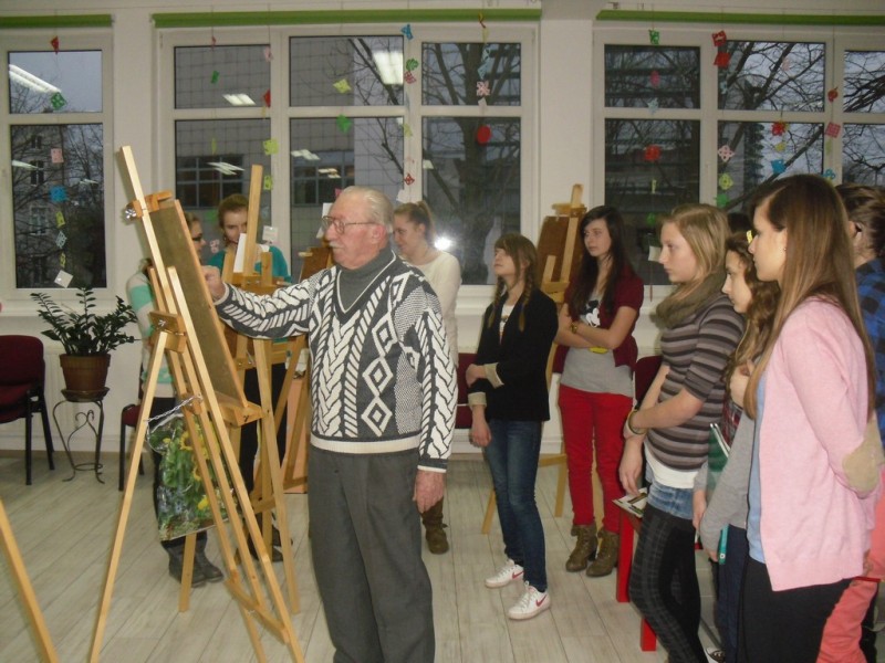 W pierwszej części spotkania artysta opowiedział parę słów o sobie, swojej pasji malarskiej oraz zaprezentował kilka obrazów. W drugiej części odbyły się warsztaty przy sztalugach. Każdy uczestnik mógł wybrać sobie fragment przyrody z przygotowanych dla nich wcześniej regionalnych publikacji fotograficznych.