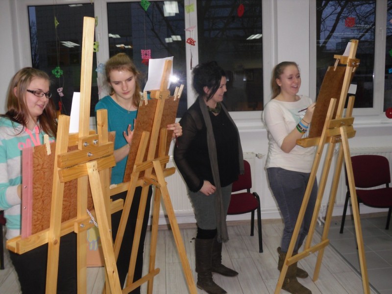 W warsztatach wzięli udział członkowie "Malarskiego kręgu", działającego przy bibliotece w Cybince oraz lokalni artyści. Na spotkaniu pojawili się również przedstawiciele koła plastycznego z Gimnazjum nr 2. Obecny był także Karol Duer z Fundacji na rzecz Collegium Polonicum, koordynator całego przedsięwzięcia.