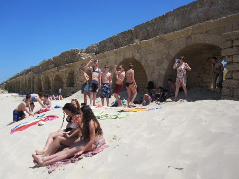 Ważną częścią pobytu w Izraelu było również zwiedzanie tego pięknego i pełnego kontrastów kraju. Uczniowie mieli więc możliwość zobaczenia pustynnych okolic Morza Martwego i wykąpania się w jego mocno zasolonych wodach. Wędrując przez oazę – Park Narodowy Ein Gedi dziwili się, wypływającej z Pustyni Judzkiej rzeczce, która spływając kaskadami w stronę Morza Martwego, tworzyła wodospady i zmieniała pustynną okolicę w zielony pas życia, pełen ptaków i zwierząt.