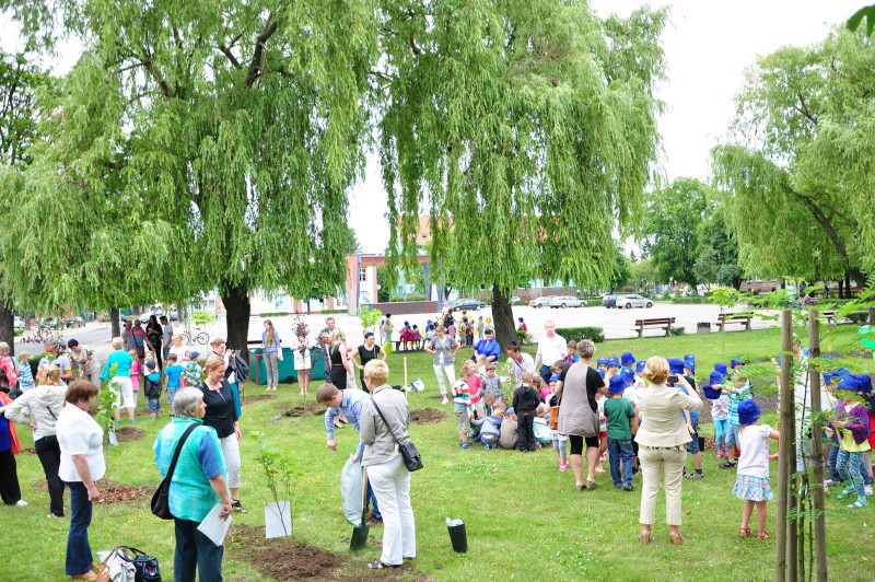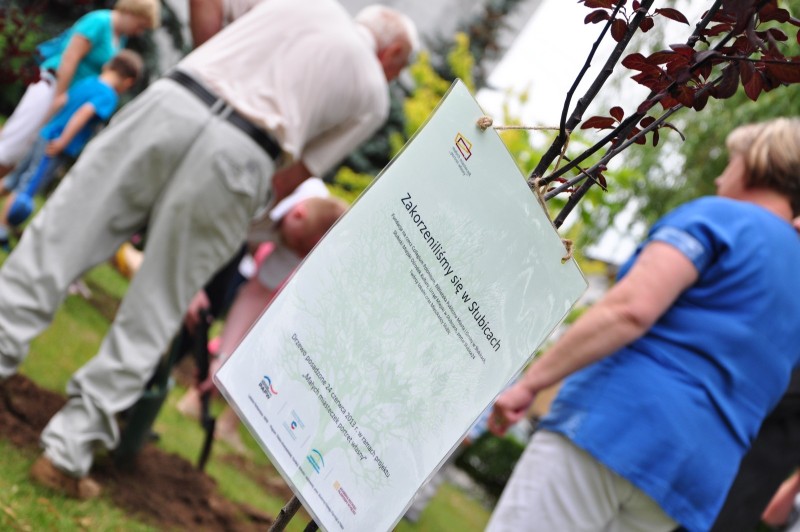 Na placu pojawili się burmistrz Słubic, dzieci ze słubickich przedszkoli, lokalni artyści oraz przedstawiciele beneficjenta projektu, Fundacji na rzecz Colegium Polonicum w Słubicach, Karol Duer i Karolina Dreszer. Wspólnie dokonali zasadzenia 10 młodych drzew, czyli tytułowego „zakorzenienia”. Najlepiej przygotowani okazali się przedszkolacy, którzy przynieśli ze sobą własny sprzęt do robót ziemnych. Wcześniej, krótką historię Słubic przedstawił regionalista Roland Semik, a najmłodsi zaprezentowali program artystyczny.