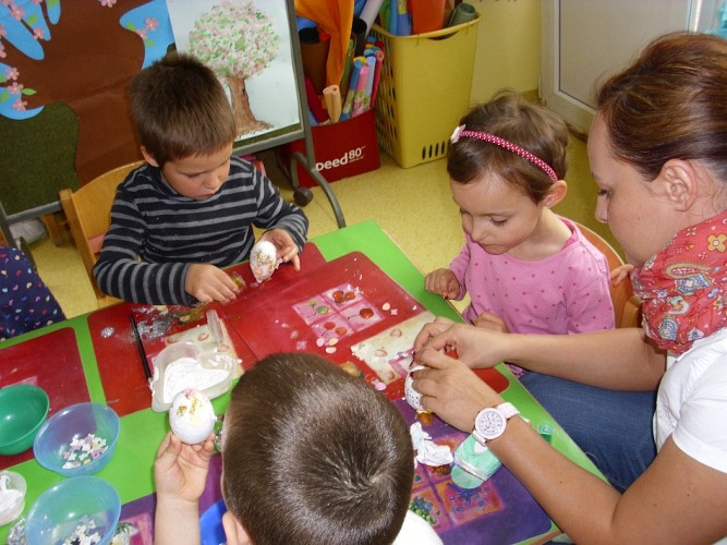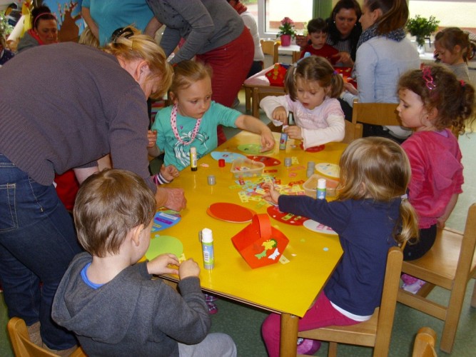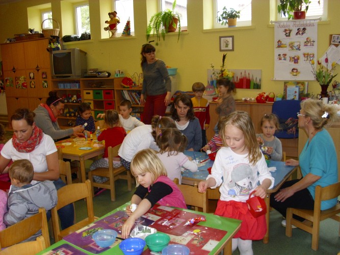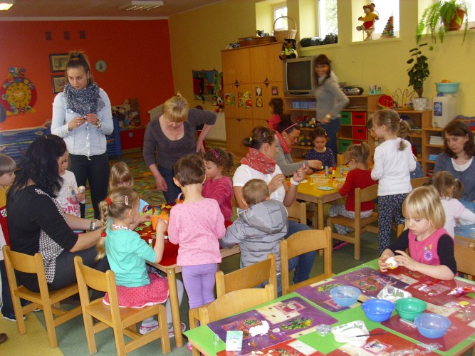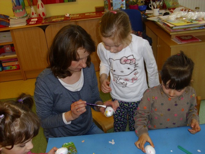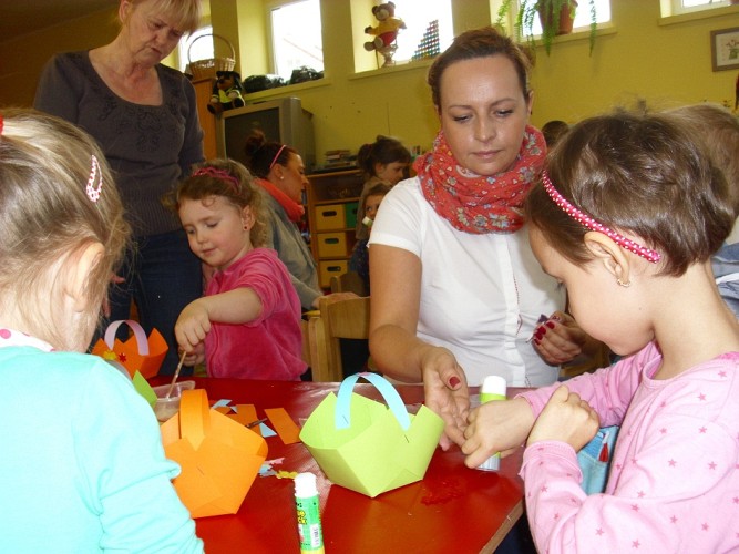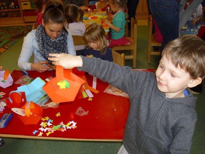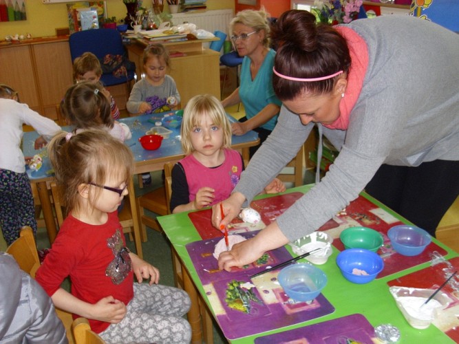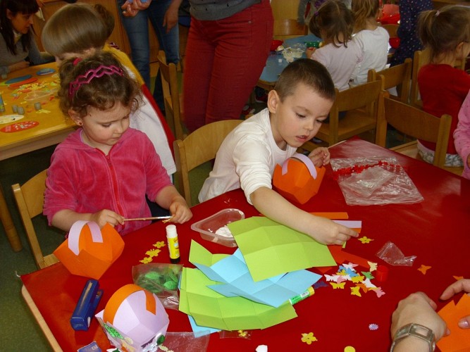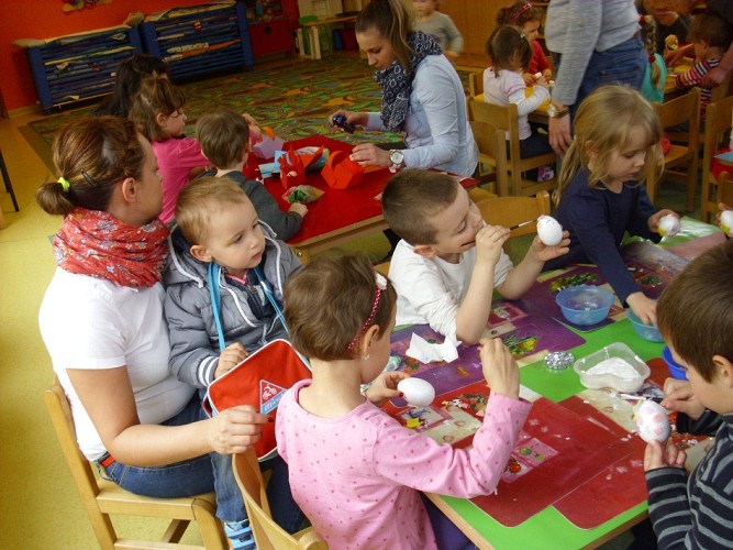 Przedszkolaki malowały i ozdabiały jaja, składały koszyczki, posługując się najrozmaitszymi technikami plastycznymi. Dużym zainteresowaniem cieszyło się ozdabianie styropianowych jaj. Po warsztatach każde dziecko będzie mogło ozdobić świąteczny stół własnoręcznie wykonanymi dekoracjami.