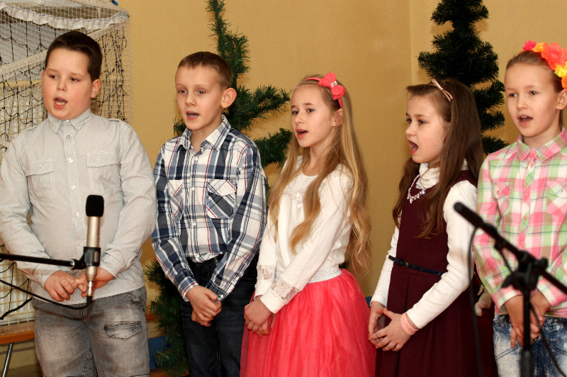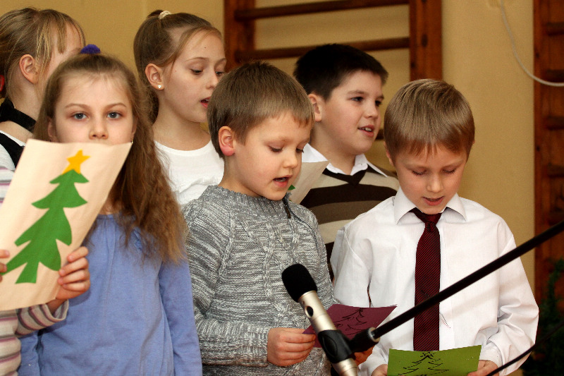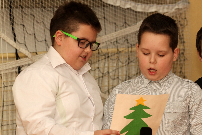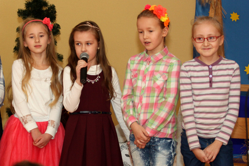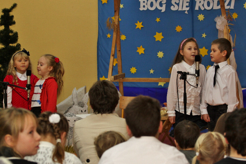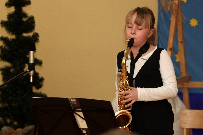 Po przedszkolakach kolędowali uczniowie wszystkich klasy - od pierwszej do szóstej. Publiczność mogła usłyszeć sporą ilość polskich kolęd i pastorałek oraz piosenek świątecznych. Była także jedno w języku niemieckim. Atrakcją wieczoru był występ saksofonistki Zuzi Mierzejewskiej, która na tym trudnym w nauce instrumencie dętym wykonała dwa utwory.