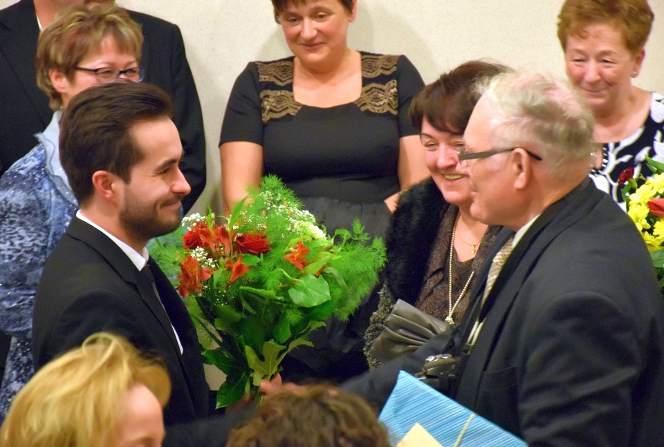 Artyści zaprezentowali dwa dzieła W.A. Mozarta: Symfonię g –moll KV 440 oraz Mszę żałobną – Requiem. Sądząc po reakcjach zgromadzonej publiczności - artyści i główny bohater wieczoru spisali się na medal. Po części muzycznej odbyła się okolicznościowa uroczystość z udziałem młodego dyrygenta i zaproszonych gości
