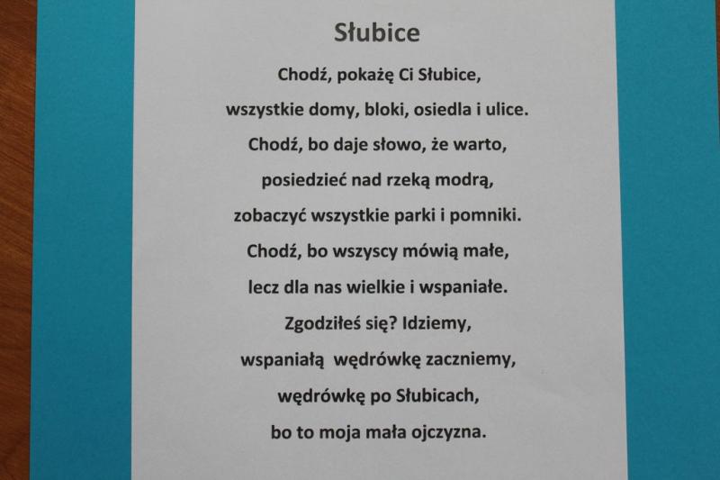 Wystawa nosi tytuł pt. "Tu mieszkam - Słubice moja mała Ojczyzna". Jest podsumowaniem szkolnego projektu, którego jednym z zadań było układanie wierszy o Słubicach oraz stworzenie prac plastycznych przedstawiających ciekawe miejsca w naszej okolicy. Uczniowie przygotowali także prezentację multimedialną.