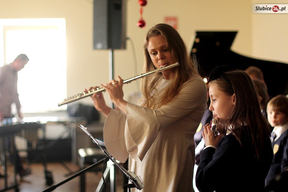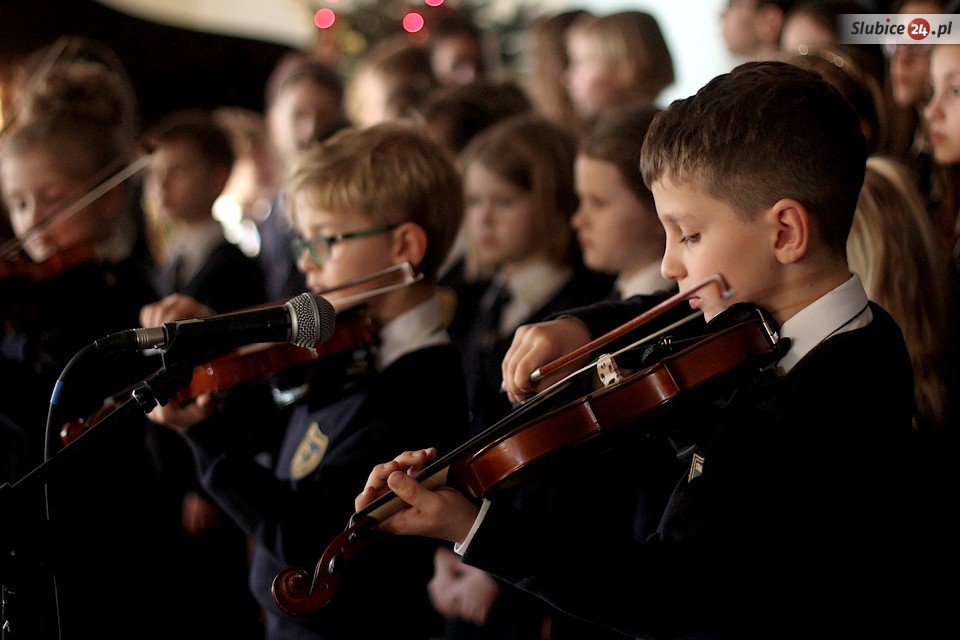 Przed zgromadzoną publicznością, głównie rodzicami i dziadkami, uczniowie zaprezentowali nie tylko kolędy i pastorałki, ale także popularne utwory muzyki rozrywkowej. Wśród zaproszonych gości pojawili się szefowa Słubickiego Towarzystwa Muzycznego Barbara Weiser oraz proboszcz parafii pw. Ducha Świętego Henryk Wojnar. O nagłośnienie zadbał niezawodny Piotr Tamborski.