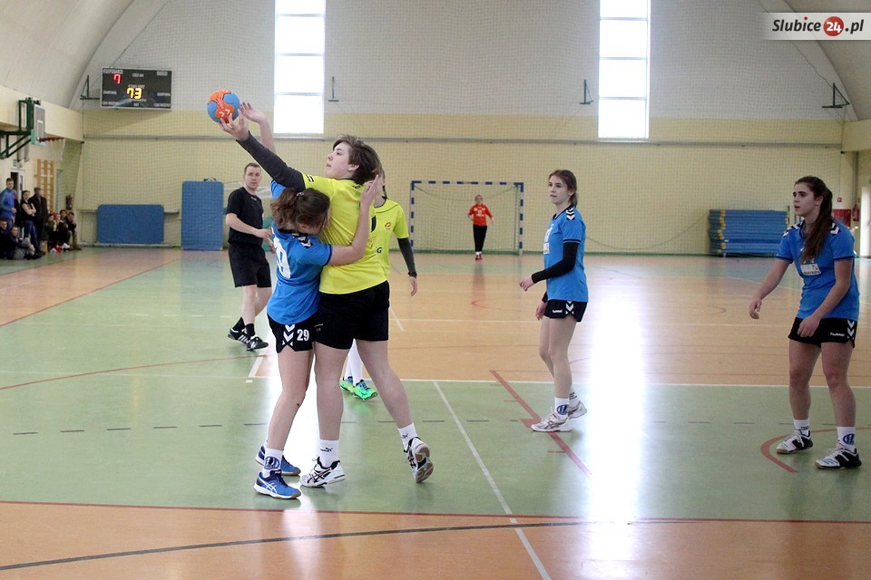 Mecz rozgrano 18 marca w hali sportowej przy Gimnazjum nr 1 w Słubicach. Faworytkami spotkania były słubiczanki, które dwa tygodnie temu wygrały w Świebodzinie 33:27. Nie inaczej było w rewanżu. Nasze szczypiornistki od pierwszych minut spotkania narzuciły swój styl gry i systematycznie powiększały bramkową przewagę. Pierwsza połowa zakończyła się wynikiem 13:8.
