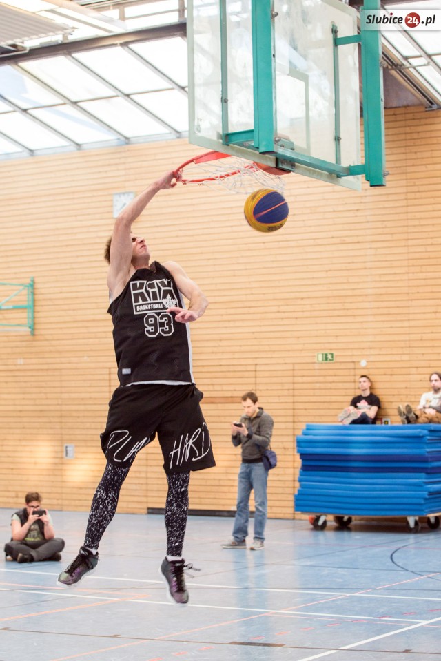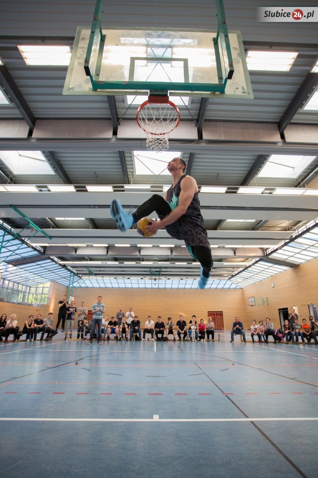 Show przygotowano na hali, w której na co dzień trenują nasi koszykarze. Panowie z 1. ASC Red Cocks Frankfurt stanęli na wysokości zdania i udało im się stworzyć streetballową atmosferę, która zaskoczyła nawet zaproszonego gośca. Była oprawa muzyczną o którą zadbał DJ Chickin, a każda chętna osoba, nawet początkująca, mogła spróbować swoich sił z piłką do kosza. 11 maja magia koszykówki przyciągnęła sporą liczbę widzów z obu stron Odry - loty nad obręczą przyszło oglądać ponad 50 osób.