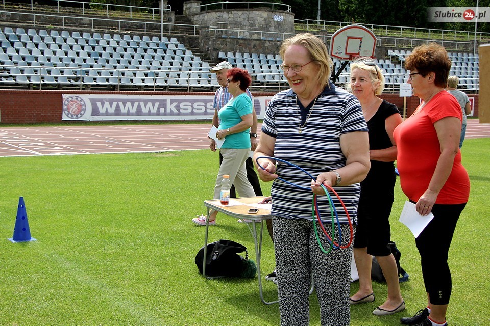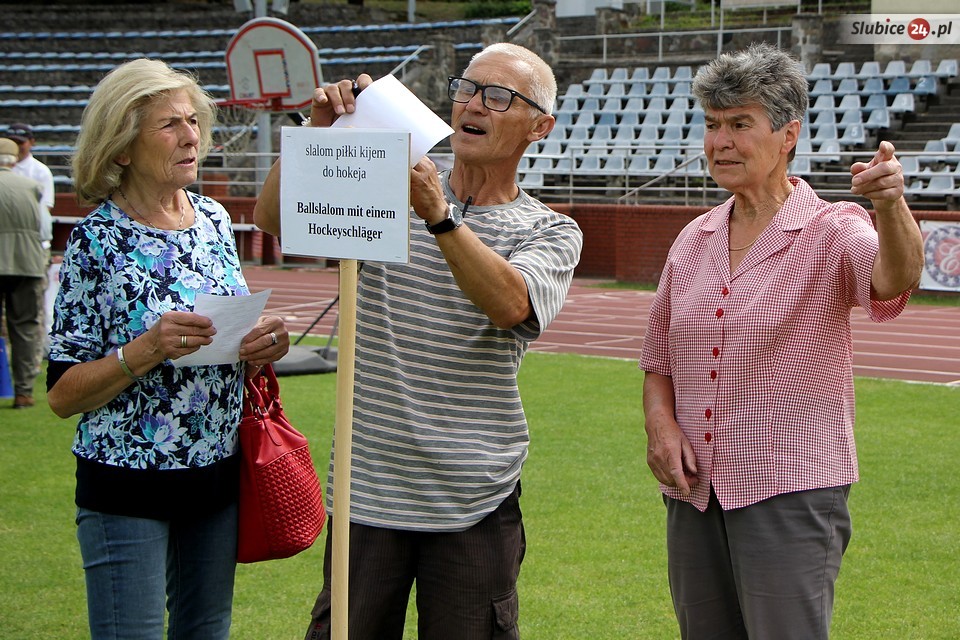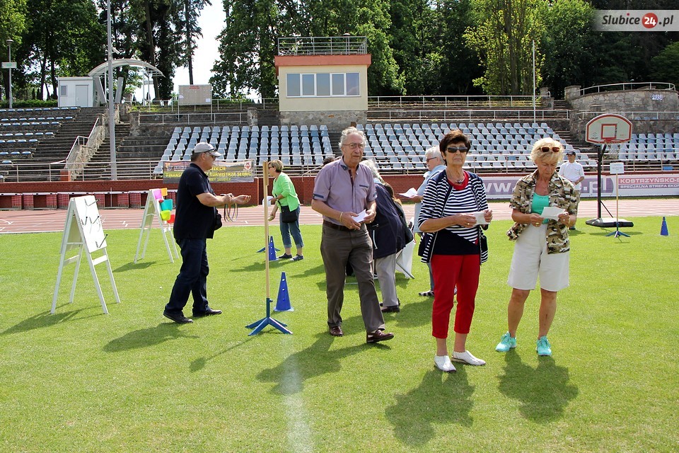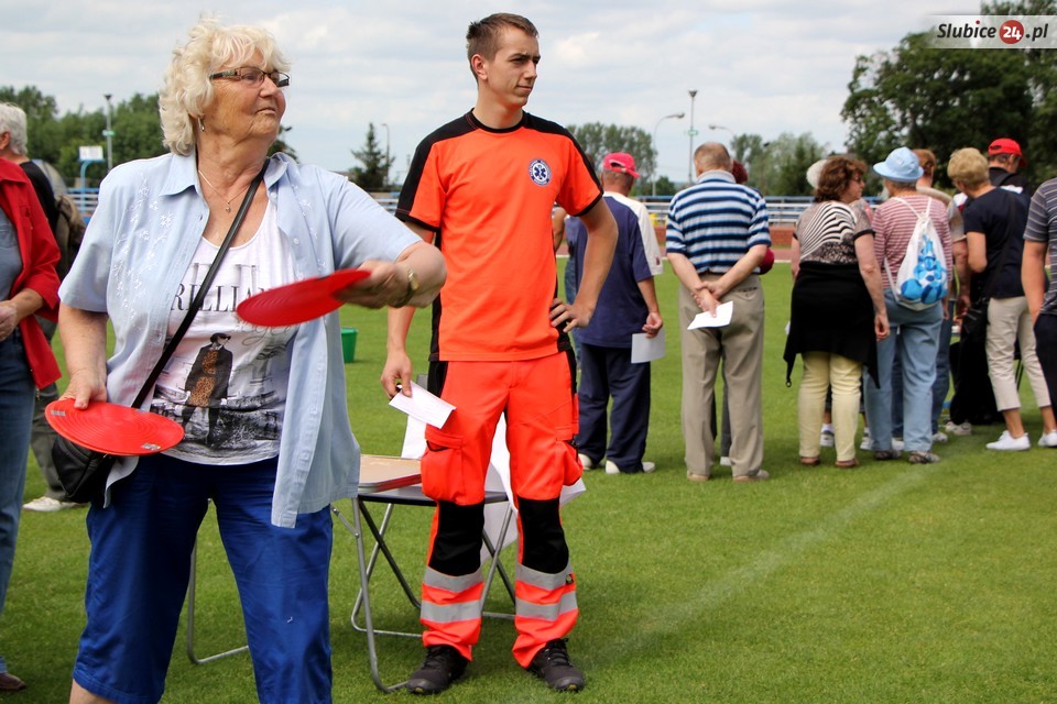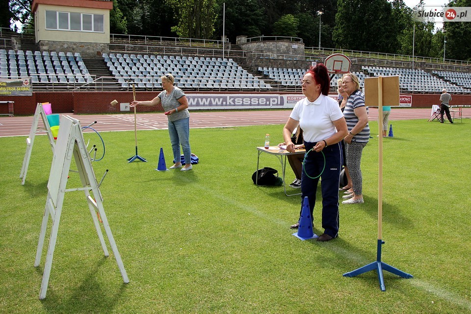 Co w tym roku czekało na uczestników imprezy? Przede wszystkim szereg konkurencji sprawnościowych. Seniorzy mieli do zaliczenia m.in. rzut piłką do kosza, slalom z kijem hokejowym, strzały do bramki czy rzut kółkiem. Były też wyjątkowe oryginalne konkurencje, jak ta przygotowana przez słubickich wędkarzy, a mianowicie rzut do celu... kulą zanętową.