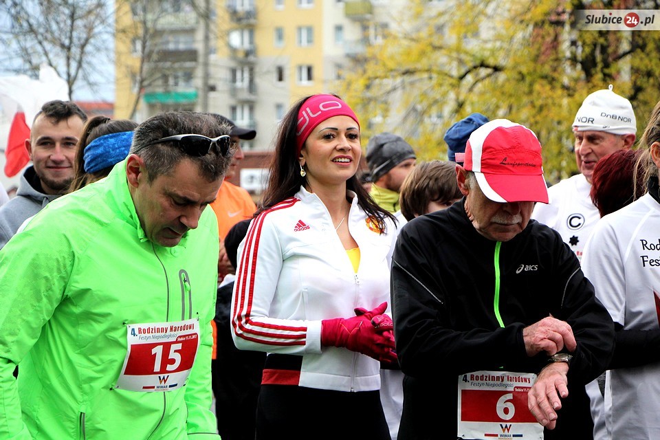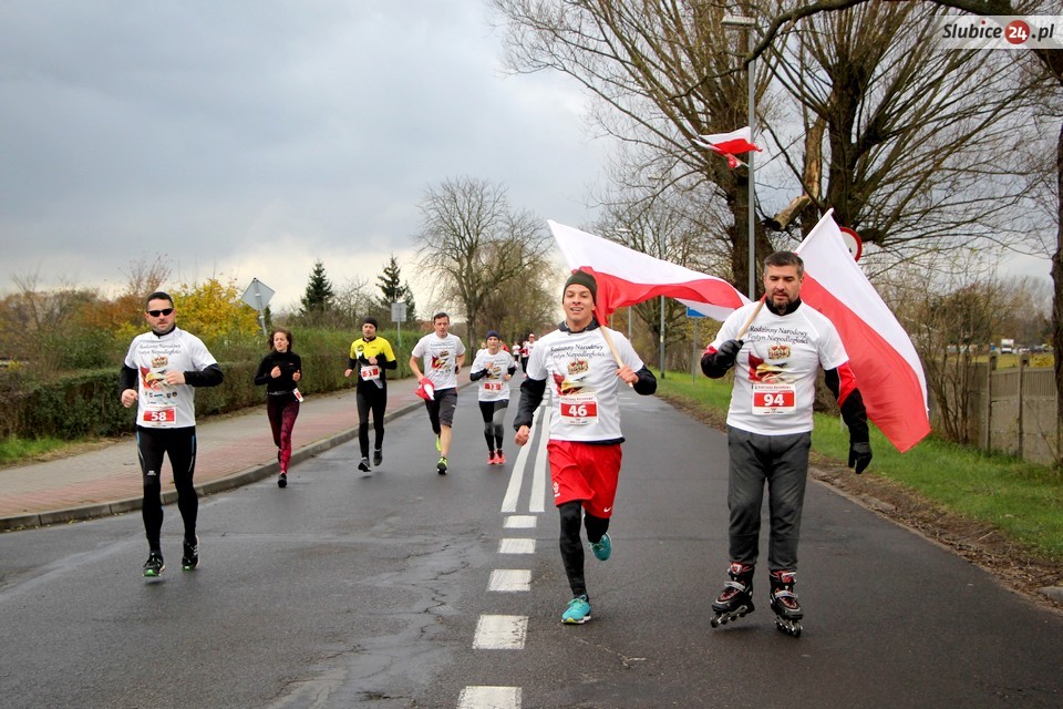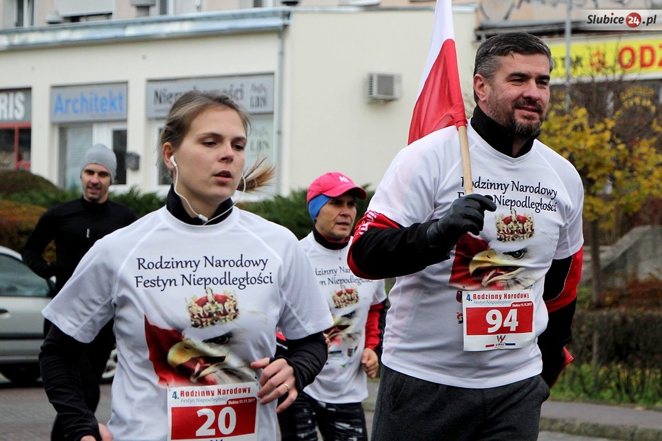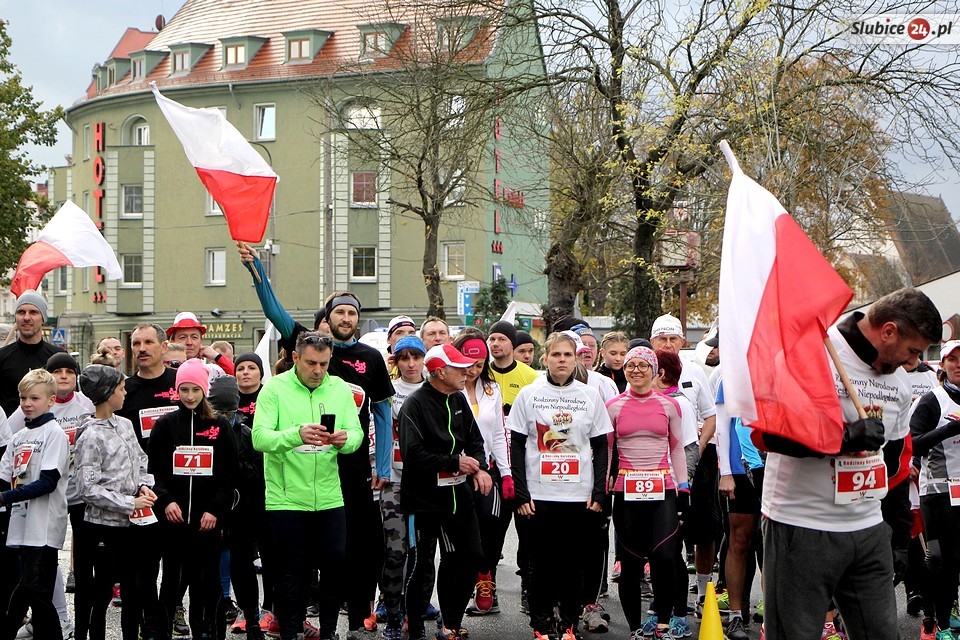 Rodzinny Narodowy Festyn Niepodległości organizowany był w naszym mieście już po raz czwarty. Choć frekwencja nie dopisała tak jak w latach ubiegłych, atmosfera była radosna i patriotyczna. Odpowiedniego nastroju dodawały biało-czerwone barwy, które można było spotkać na każdym kroku - od koszulek uczestników po trzymane w rękach polskie flagi. Biegaczy nie odstraszyła nawet deszczowa i wietrzna pogoda.