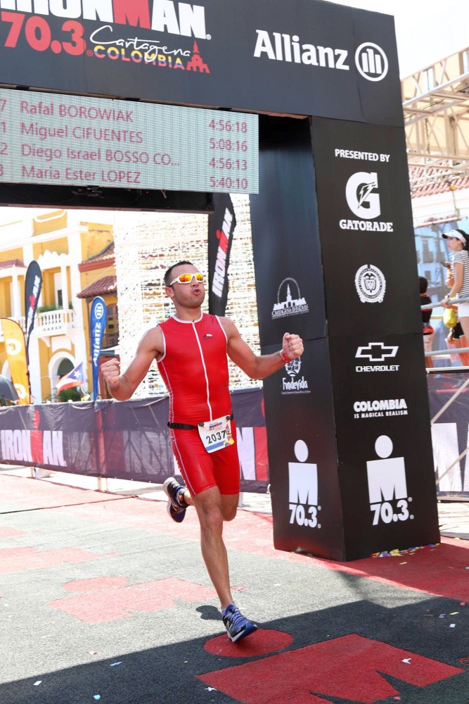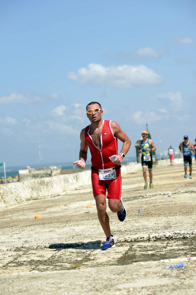 Trasa to jedna pętla 90 km (45 km wzdłuż wybrzeża w kierunku Barranquilli i powrót). Pierwsza cześć to nieustanny podjazd pod wiatr. Entuzjazm opada wtedy bardzo szybko w takich warunkach. Całe szczęście na powrocie odrobiłem częściowo straty czasowe, ale konieczne były dłuższe postoje na bufetach, aby schłodzić organizm zimną wodą. Etap biegowy odbył się na starym mieście Cartageny. Dwie pętle po 10.5 km plus dobieg. Bym to największy sprawdzian wytrzymałości. Całe szczęście co 1.5 km były bufety z lodem i zimną wodą. Przy 34 stopniach w cieniu nie można było odpuścić żadnej możliwość redukcji temperatury ciała. Bieg zajmuje mi końcowo 1 h i 40 min. Walka była do samej mety, aby nie przysporzyć wstydu naszemu krajowi jako jedyny Polak.