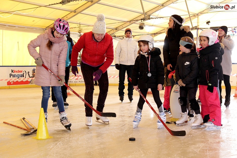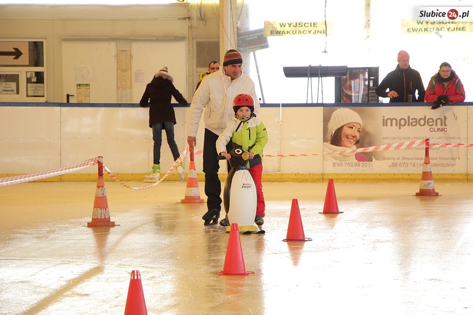 A co czekało na lodowej tafli? SOSiR przygotował dla amatorów jady na łyżwach mniej i bardziej trudne wyzwania: jazdę slalomem, zbieranie woreczków i układanie pachołków na czas – czyli trójbój sprawnościowy. Było także strzelanie do celu krążkiem hokejowym i rodzinny tor przeszkód na czas. Udział w konkurencjach był dla niektórych dużym wyzwaniem, które dzielnie podjęli, młodszym pomagali rodzice i nieocenione pingwinki.