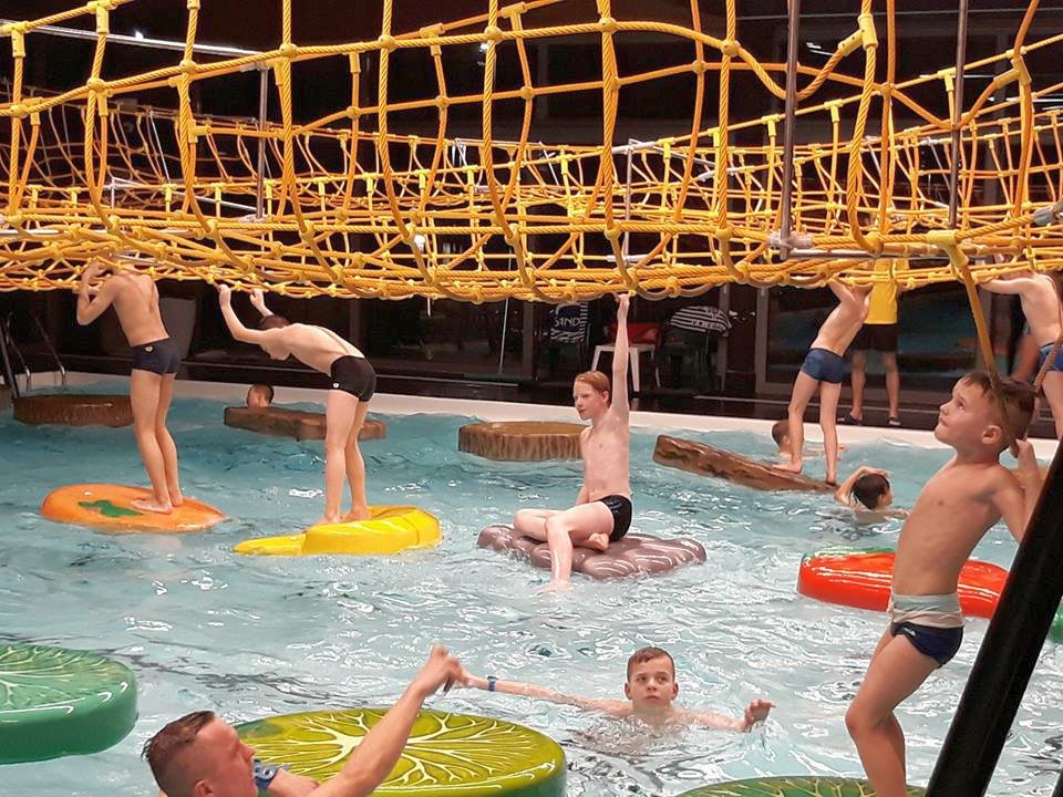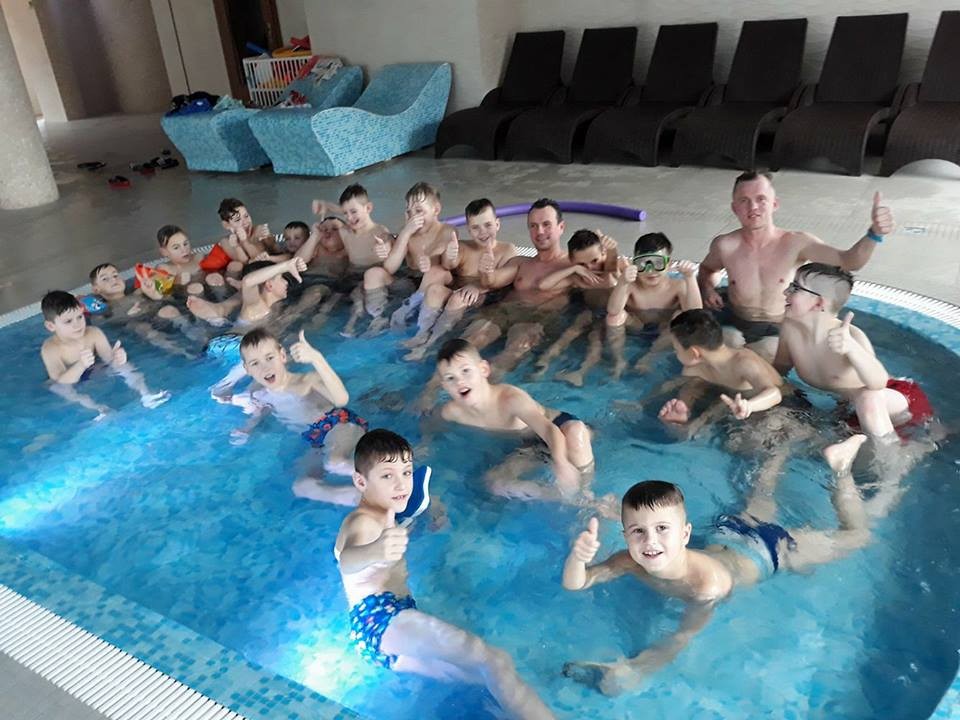 Ale młodzi sportowcy spędzali czas nie tylko na treningach. Po ciężkiej pracy na boisku regenerowali siły w SPA, czyli m.in. na basenie i w saunie. W wodzie świetnie czuli się i młodsi, i starsi. Humory dopisywały wszystkim!