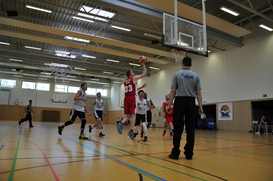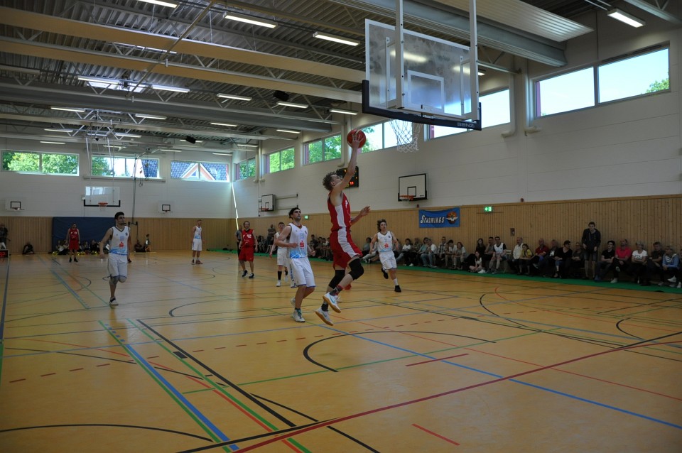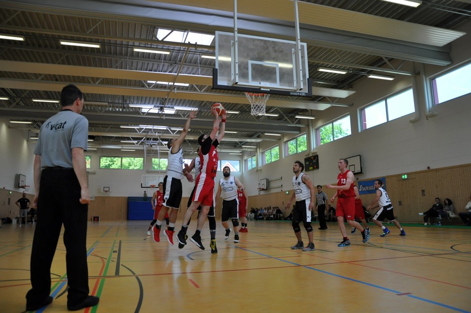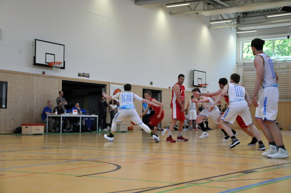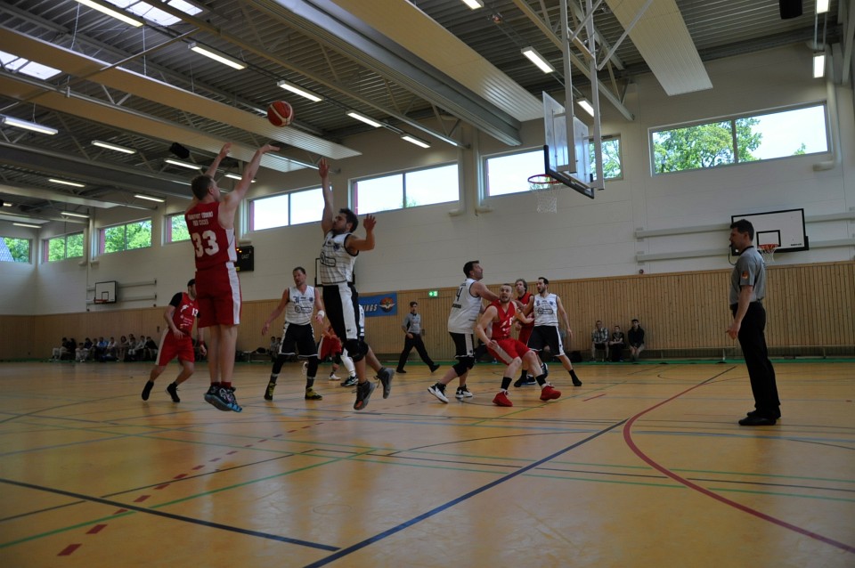 Łatwo nie było, bo za rywala miały twardo grającą drużynę SV Babelsberg 03, z którą w trakcie sezonu zasadniczego przegrywały dwukrotnie (63:65 oraz 60:68). Nasi zawodnicy udowodnili jednak, że dobrze przygotowali się na końcówkę sezonu. Od samego początku przycisnęli rywali obroną strefową i szybko wypracowali sobie kilkunastopunktową przewagę. Liderem drużyny był weteran Marcin Kiedrowicz, który rozegrał najlepszy mecz sezonu rzucając 36 punktów. W końcówce rywale próbowali grać agresywnie i zaczęli trafiać za 3 punkty, ale udało im się tylko nieznacznie zmniejszyć straty. Ostateczny wynik to 89:78 dla czerwonych kogutów i upragniony awans do finału.