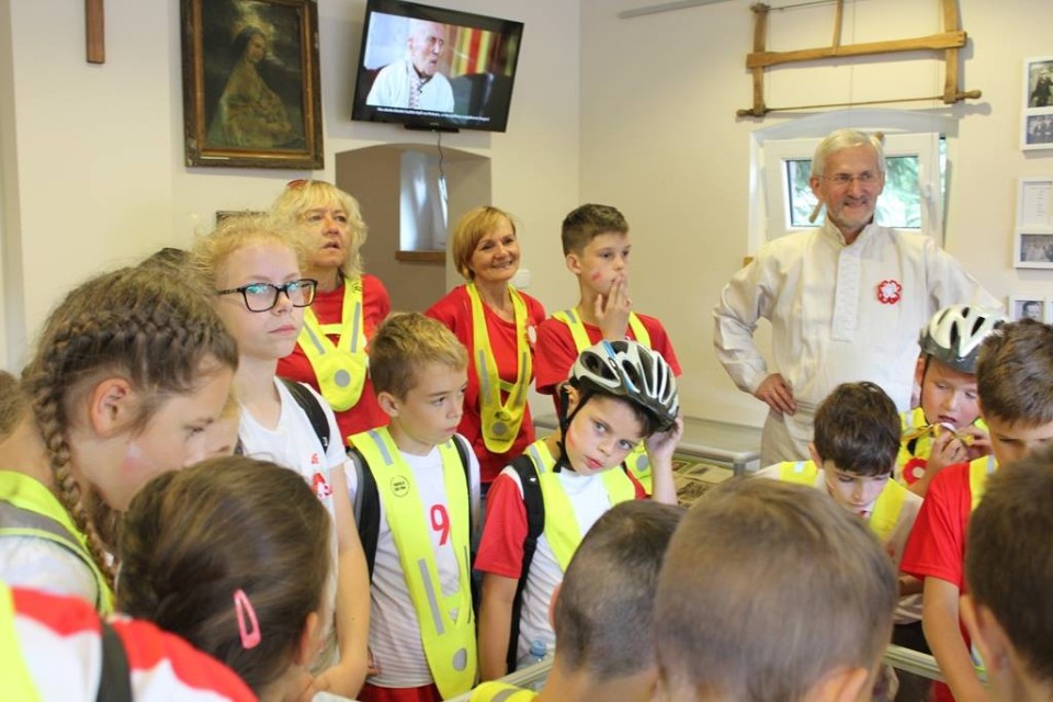 A dokąd udali się rowerzyści? Ich celem było poznać swój kraj, poprzez historię swego regionu. Pierwszego dnia, wraz z burmistrzem Markiem Kołodziejczykiem, pojechali do pobliskiego Białkowa, gdzie zamieszkują m.in. potomkowie repatriantów z Polesia (obecnie znajdującego się na terenie Białorusi).