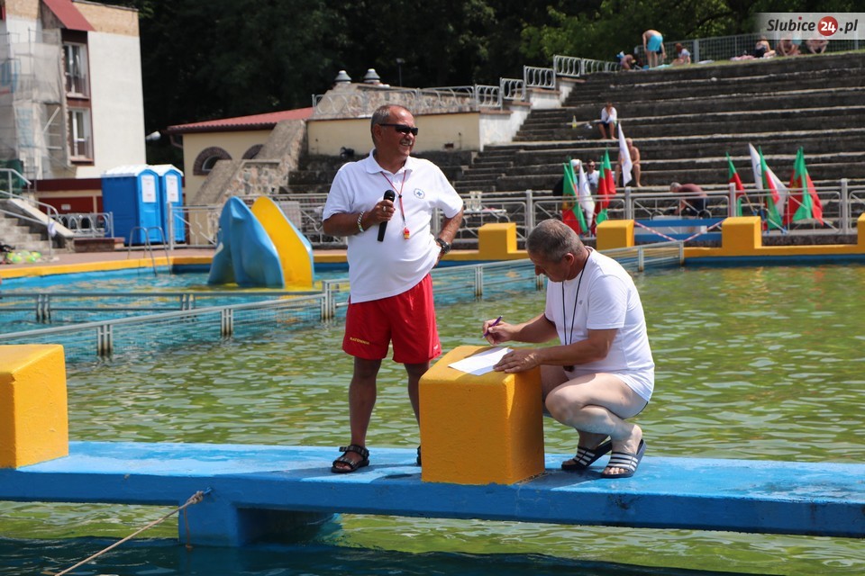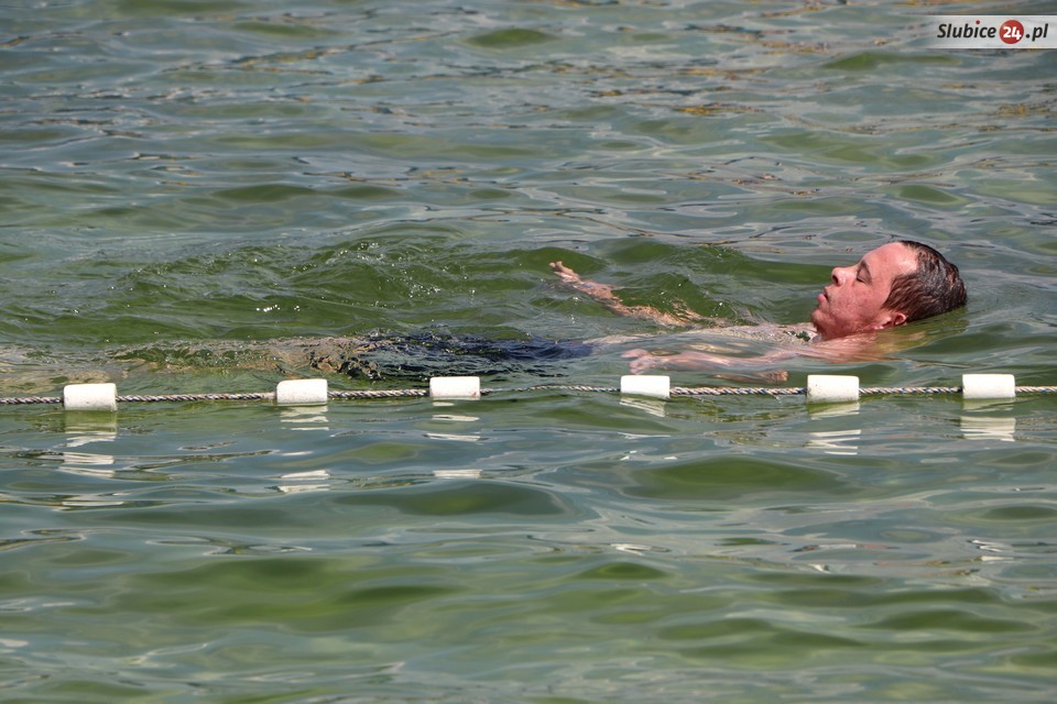 Najpierw do rywalizacji przystąpili najmłodsi uczestnicy. Ich zadaniem było pokonanie szerokości brodzika - najpierw przodem, a później tyłem. Mogli płynąć, mogli również iść. Nad ich bezpieczeństwem czuwali ratownicy ze swoim szefem Leszkiem Smolarczykiem.