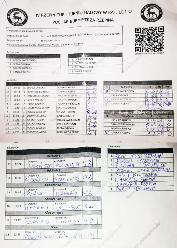 Pierwszego dnia turnieju rywalizowały drużyny z roczników 2008 oraz 2011. W tej pierwszej kategorii poloniści zajęli trzecie miejsce, a ich snajper, Adam Sierżant, został królem strzelców. Całą rywalizację wygrała ekipa Grün-Weiß Berlin.
