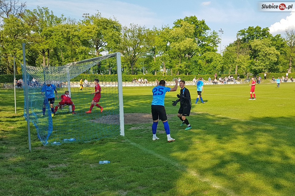 Trener słubiczan dokonywał kolejnych zmian jednak nie przynosiły one zamierzonych skutków. Na murawie pojawił się Daniel Małecki jednak spędził na nim tylko trzy minuty, ponieważ naszemu zawodnikowi odnowiła się kontuzja. Nerwowa atmosfera skutkowała, że nasi zawodnicy zaczęli łapać żółte kartki. W 90 minucie w pozornie niegroźnej sytuacji w środku pola fauluje Dawid Żurawski sędzia bez wahania wyciąga czerwoną kartkę i kończymy mecz w osłabieniu. Po skutecznej obronie całym zespołem własnej bramki sędzia kończy mecz, a w naszym zespole następuje eksplozja radości.