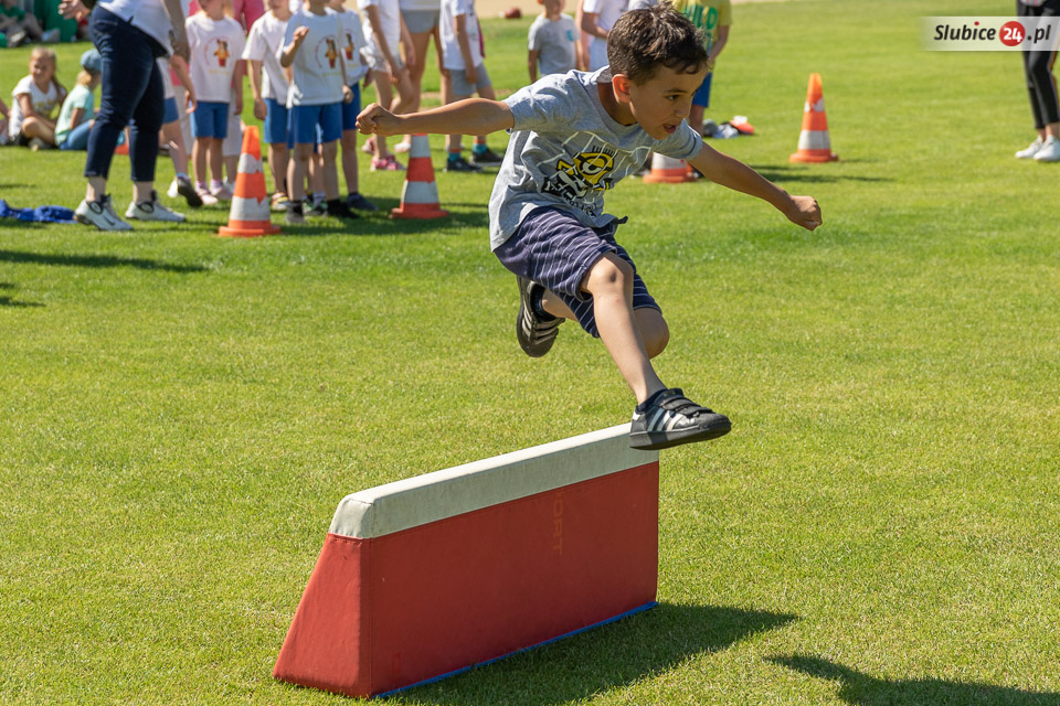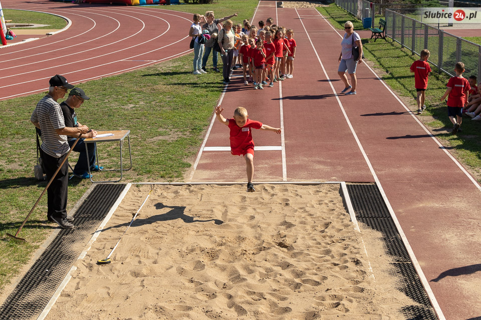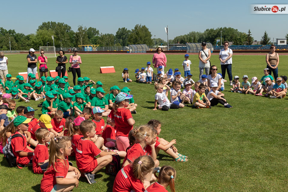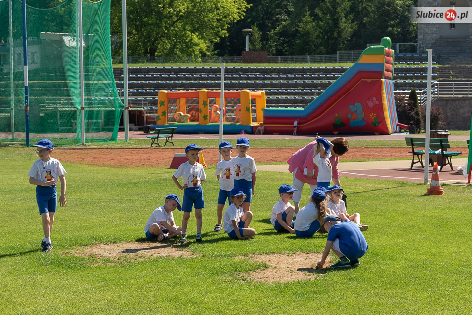 Z zaproszenia do sportowej zabawy skorzystało pięć placówek: Jarzębinka, Pinokio, Miś Uszatek oraz przedszkola z Golic i Kunowic. Na maluchy czekały cztery konkurencje: bieg na 40 m, skok w dal, rzut piłką lekarską (w grupach) oraz sztafeta z przeszkodami.