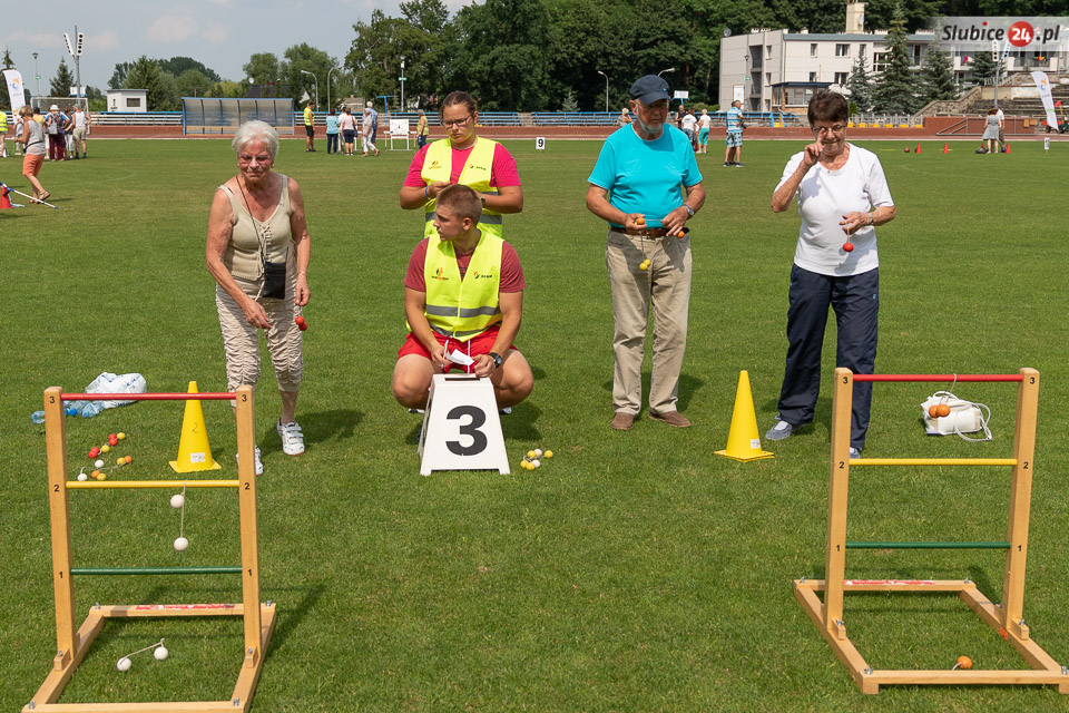 Mimo upalnej pogody, seniorzy bardzo chętnie meldowali się na kolejnych stacjach po to, żeby wykonać przygotowane dla nich zadania. Było ich 10, ale z powodu wysokiej temperatury organizatorzy ustalili minimum na poziomie 5 konkurencji. Jednak seniorzy tak łatwo się nie poddali i wielu chętnie „zaliczało” wszystkie! Żeby aż tak bardzo nie doskwierał upał, na uczestników imprezy czekały kurtyny wodne.