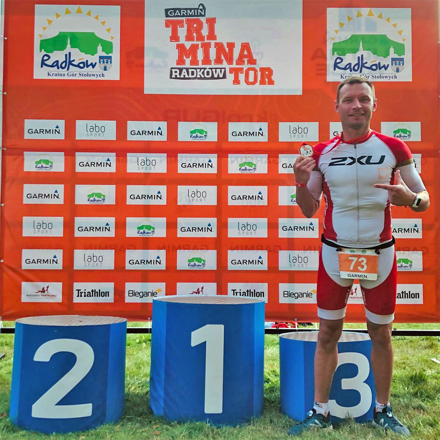 Nasz utalentowany triathlonowiec okres pandemii spędził pracowicie, czego efekty było widać na ostatnich zawodach. 12 września wystartował w Triathlonie Radków na trasie nieco zmodyfikowanej połówki pełnego dystansu (1.9 km pływania, 90 km roweru i 24 km biegu).