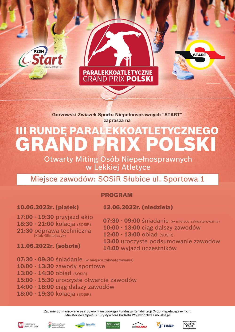 Gorzowski Związek Sportu Niepełnosprawnych "START" zaprasza na III Rundę Paralekkoatletycznego Grand Prix Polski. Impreza odbędzie się w dniach 11-12 czerwca na stadionie Słubickiego Ośrodka Sportu i Rekreacji.
