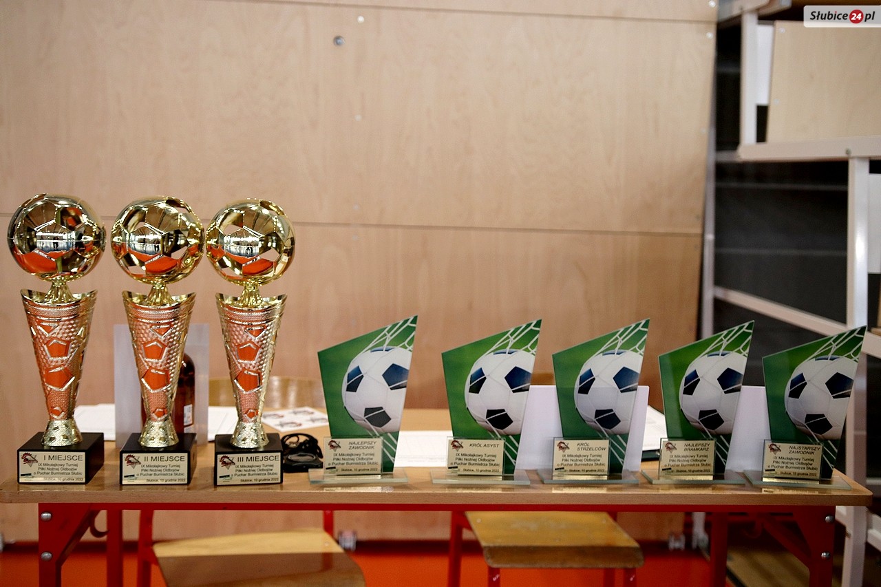 Oczywiście rywalizacja nie toczyła się „o pietruszkę’. Trzy pierwsze zespoły otrzymały puchary, a każdy zespół mikołajkową niespodziankę oraz dyplomy. Wyróżniającym się zawodnikom przyznano statuetki. Nagrody te ufundował burmistrz Słubic Mariusz Olejniczak, który objął również patronat nad turniejem