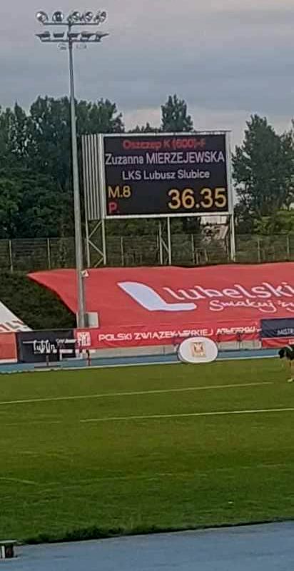 - Zanim Zuza przyjechała do Lublina miała 19. wynik w Polsce. Startując w kwalifikacjach musiała pokonać przynajmniej 5 mocniejszych przeciwniczek. Po pierwszym dniu zawodów była dwunasta. Startując w finale nie miała nic do stracenia... Już w pierwszym rzucie padła życiówka, w trzecim trzeba było zawalczyć o ścisły finał i jeszcze okazalsza ponad dwumetrowa. Wynik 36,35 m dał Zuzi 8 pozycję. Później jeszcze posłała dwa rzuty w okolicy 36 metrów – powiedziała uradowana E. Mierzejewska.