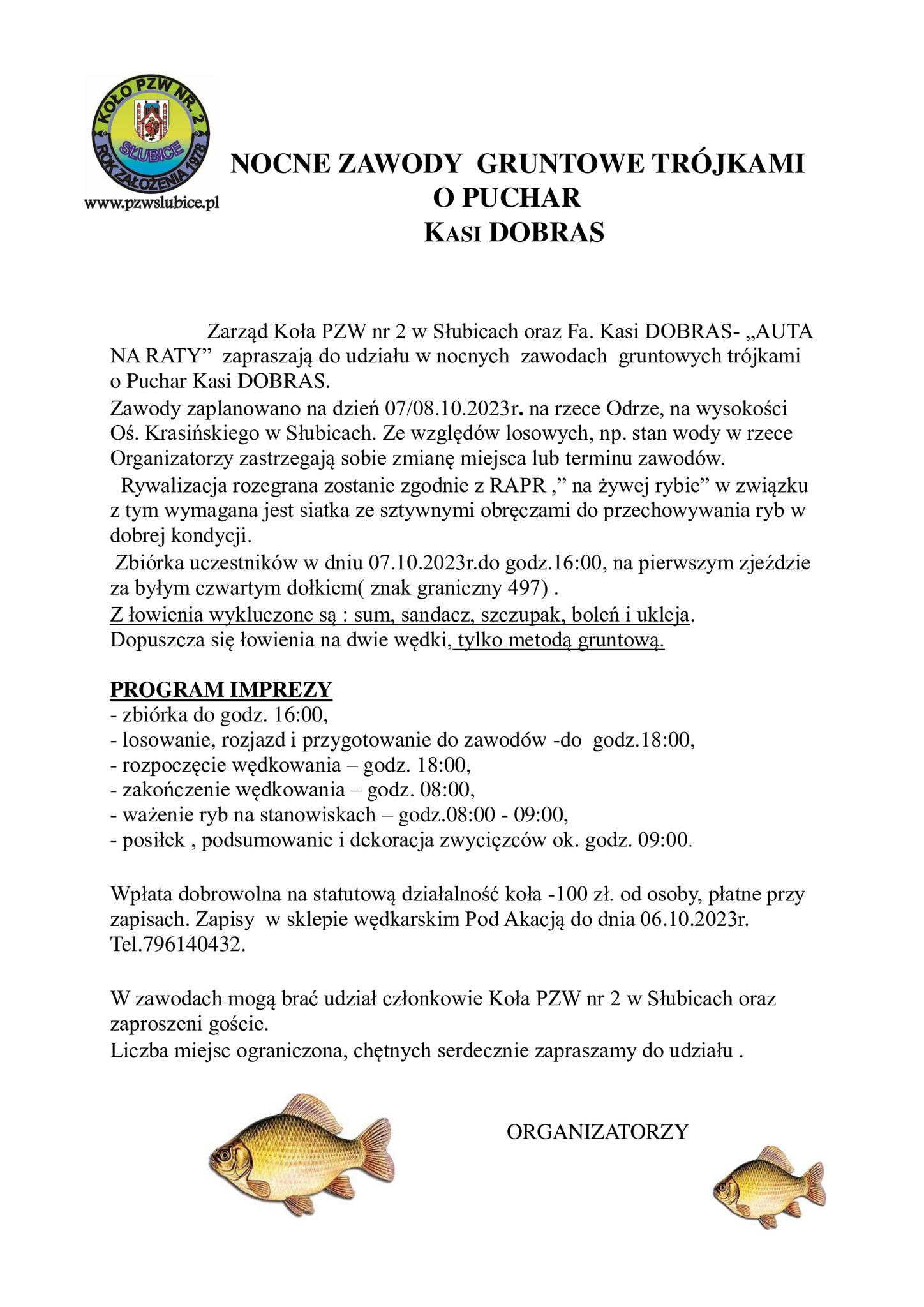 Zarząd Koła PZW nr 2 w Słubicach zaprasza na kolejne zawody organizowane na Odrze. Tym razem wędkarze powalczą o puchar Kasi Dobras. Rywalizacja odbędzie nocą i w trzyosobowych składach.