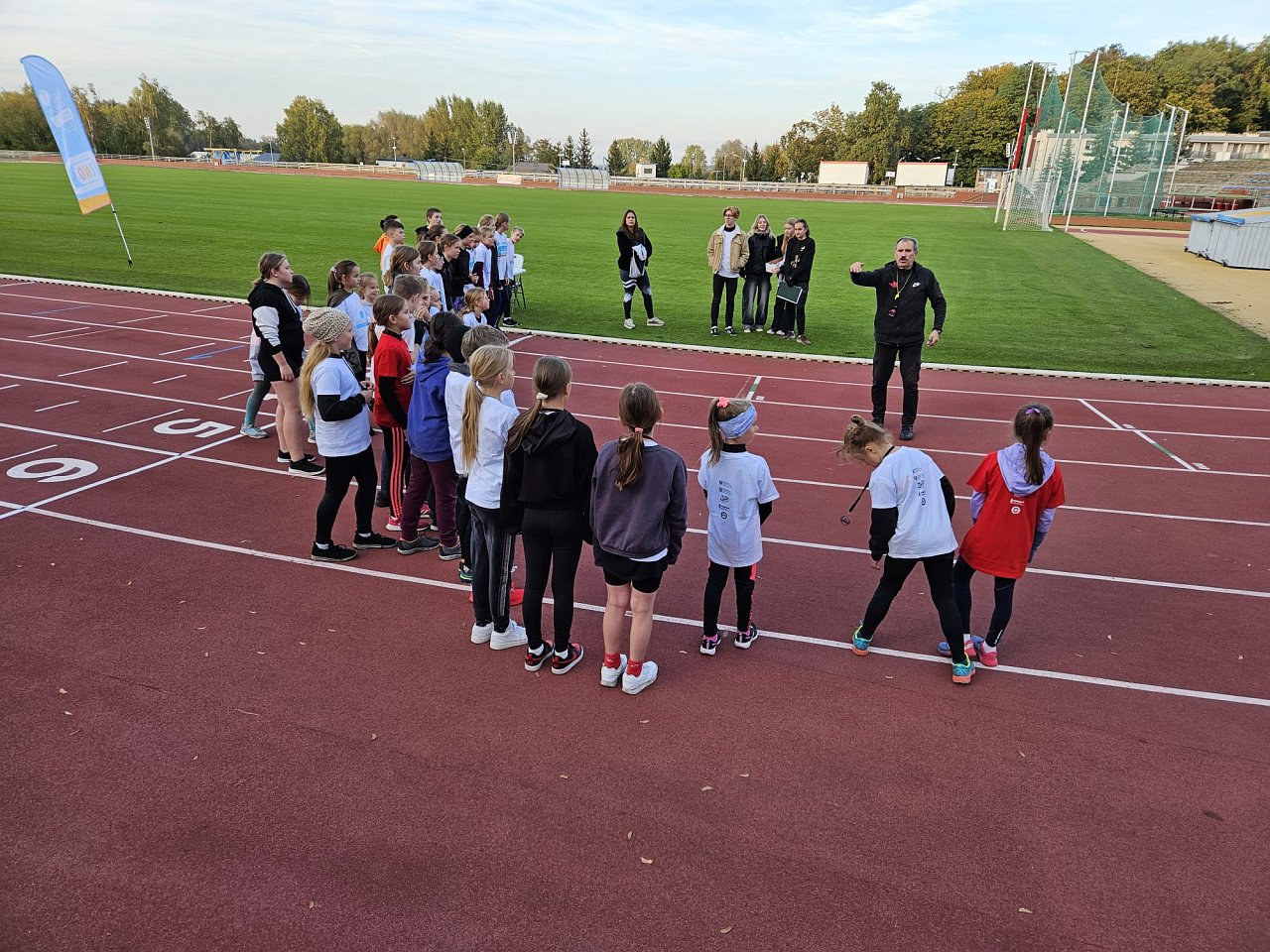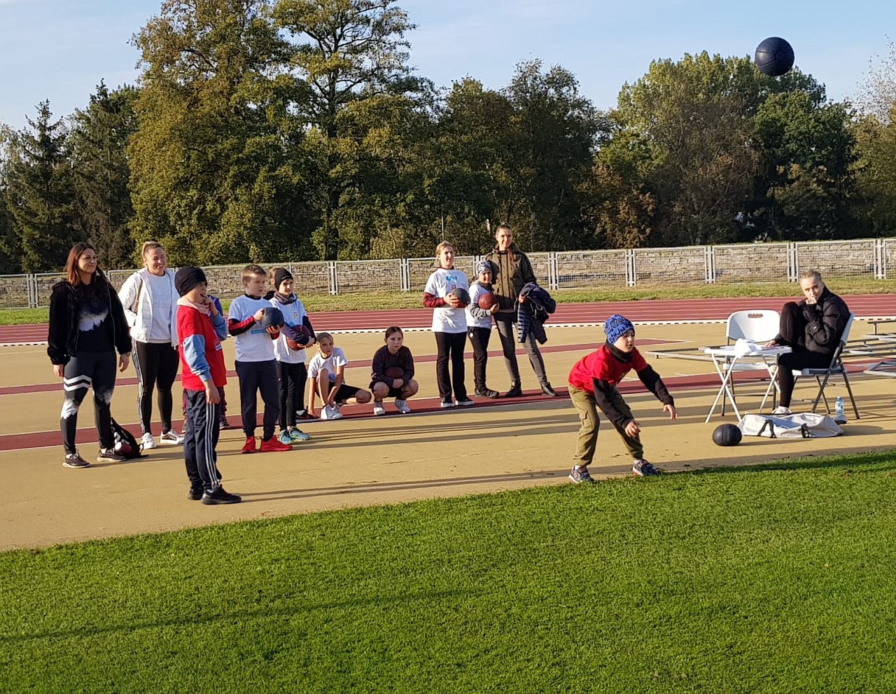 A jak wyglądały zajęcia? Trenera sprintów Jacek Grześkowiak zaprezentował dzieciom start z bloków, a trener rzutów Łukasz Horoszkiewicz pokazywał ustawienie i rozbieg do rzutu piłeczką palantową.