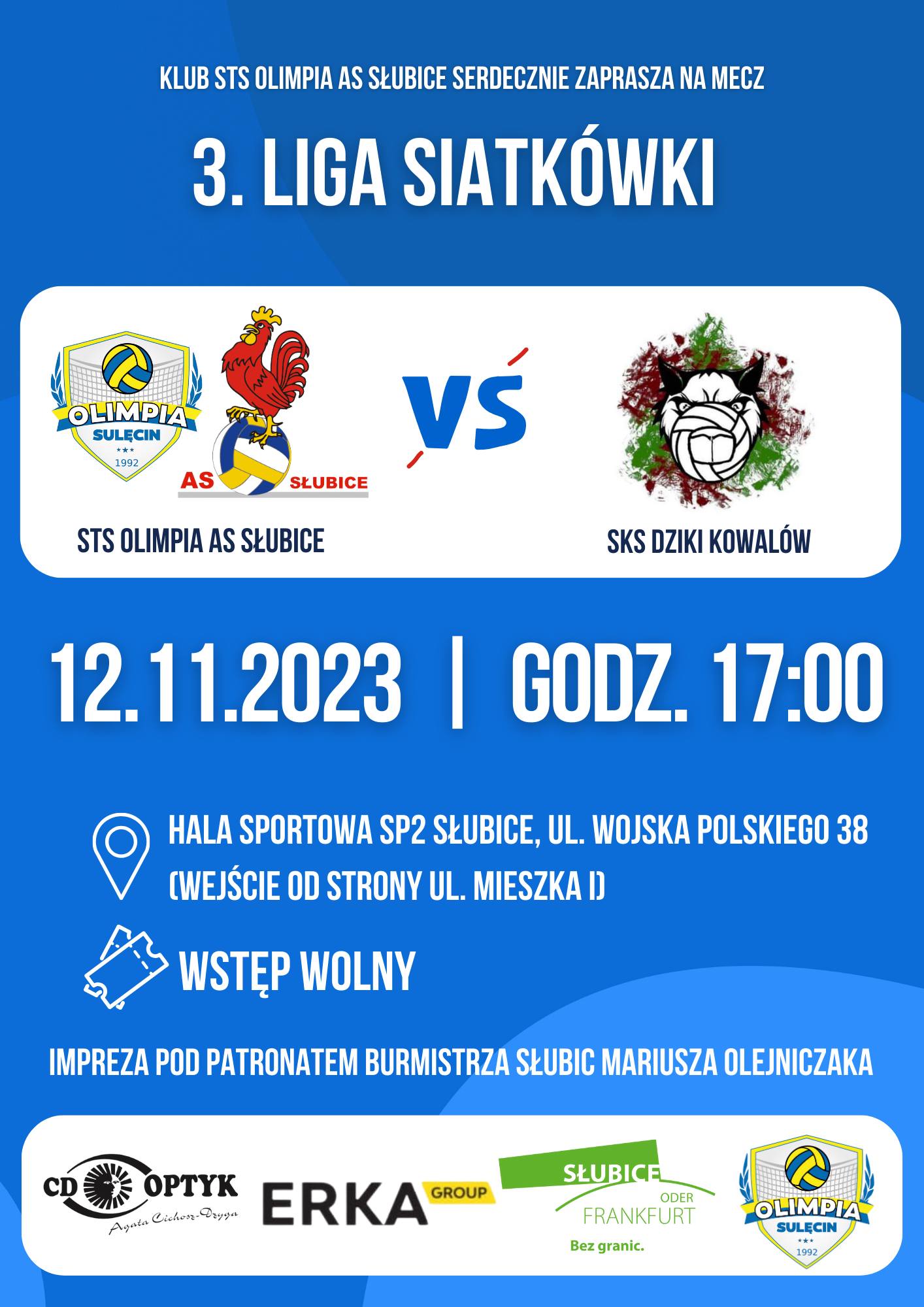 To będzie gratka dla kibiców siatkówki. W naszym mieście odbędzie się pierwsze w historii derby powiatu słubickiego w męskiej siatkówce. W prestiżowym pojedynku zmierzą się STS Olimpia As Słubice oraz Dziki Kowalów.