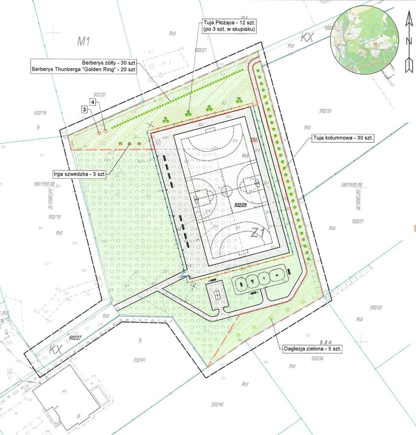 Poniżej mapka z projektem boiska udostępniona przez Gminę Słubice.