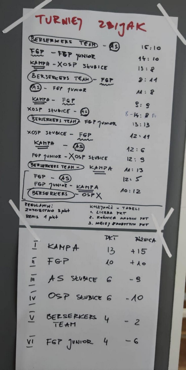 Do turnieju zgłosiło się sześć drużyn: Fundacja Grupy Pomagamy, As Słubice, OSP Słubice, Bersekers Team Słubic, Fundacja Grupy Pomagamy juniorzy oraz Kampa Słubice. Ponad 4-godzinną rywalizację rozgrywaną systemem każdy z każdy wygrała ta ostatnia ekipa.