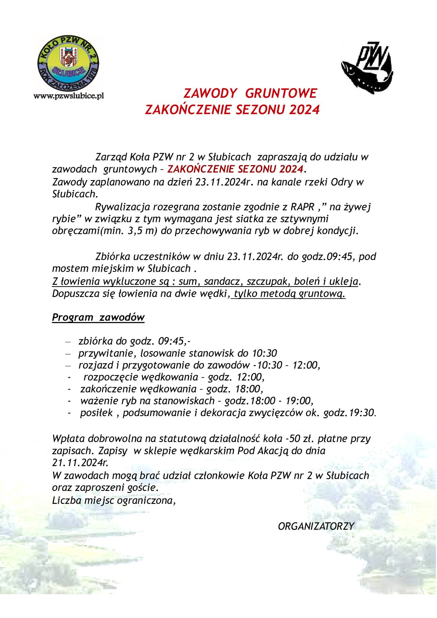 Koło PZW nr 2 w Słubicach zaprasza na wędkarskie zakończenie sezonu. Zawody gruntowe odbędą się 23 listopada na kanale rzeki Odry w Słubicach.