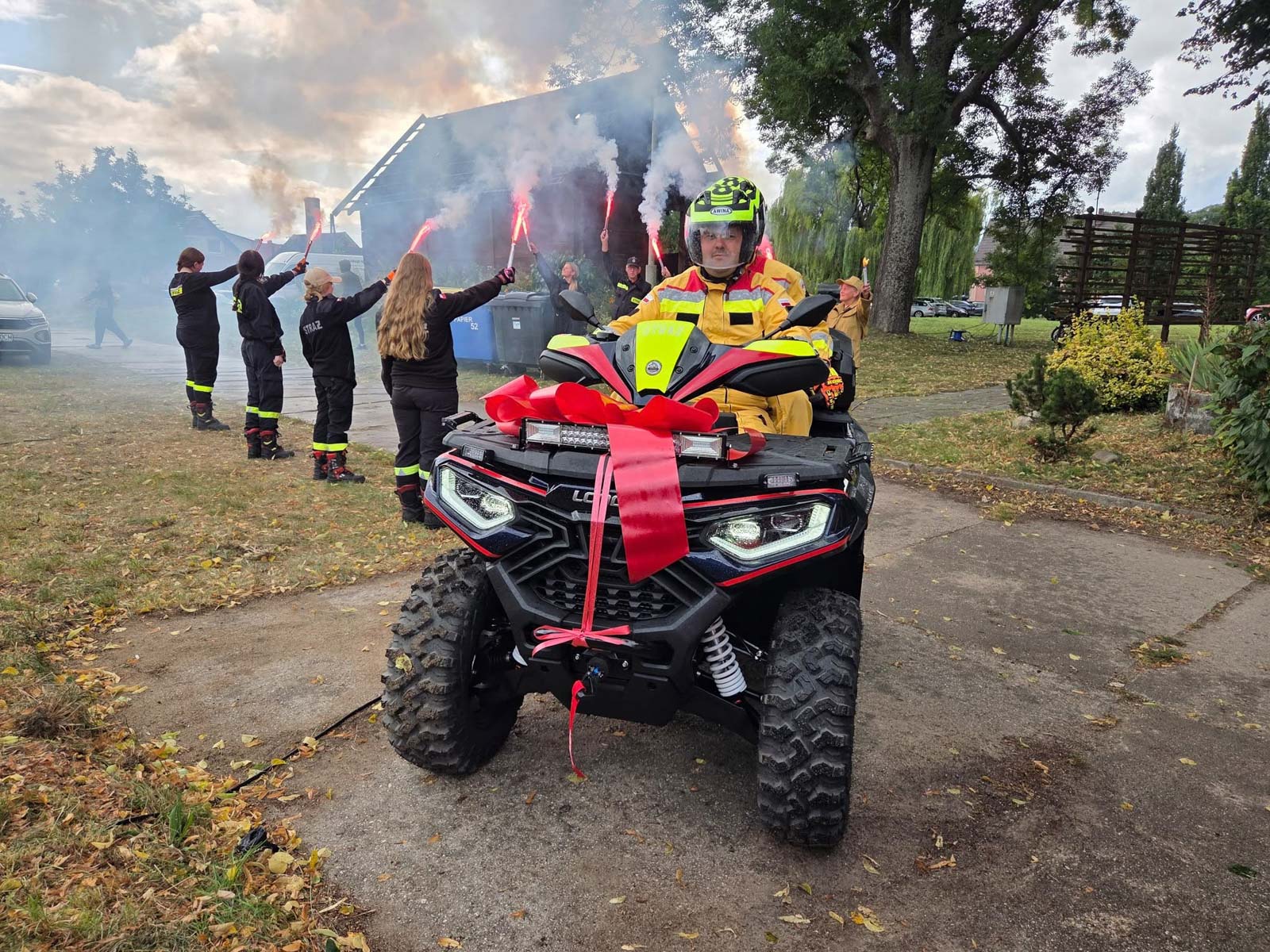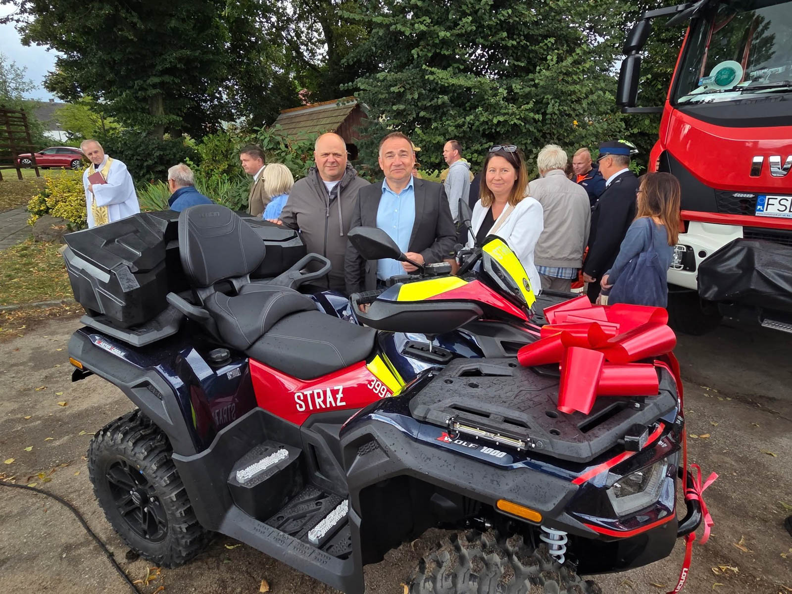 Kolejnym punktem programu było zaprezentowanie nowego pojazdu ratowniczego – quada Loncin XWolf 1000, który zasilił wyposażenie Ochotniczej Straży Pożarnej w Białkowie. Pojazd został poświęcony przez ks. proboszcza Krzysztofa Czekaja. O pozyskanie pojazdu druhowie zaczęli starać się już w lutym, biorąc udział w programie organizowanym przez Wojewódzki Fundusz Ochrony Środowiska i Gospodarki Wodnej w Zielonej Górze „Lubuski Strażak – wsparcie jednostek OSP w 2025 roku”.