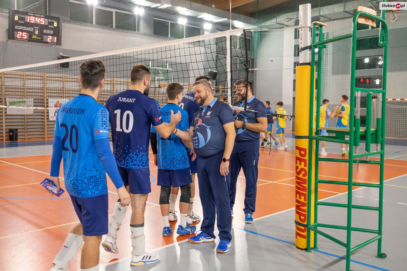 W poprzednim sezonie to właśnie na licencji Olimpii występowali słubiczanie. Nie było jednak taryfy ulgowej dla byłego macierzystego klubu – zespół trenera Pawła Dzygi od początku kontrolował przebieg spotkania. Pierwsze dwa sety zakończyły się wyraźnym prowadzeniem słubickich kogutów, a nieco bardziej wyrównana trzecia partia ostatecznie również padła łupem słubiczan.