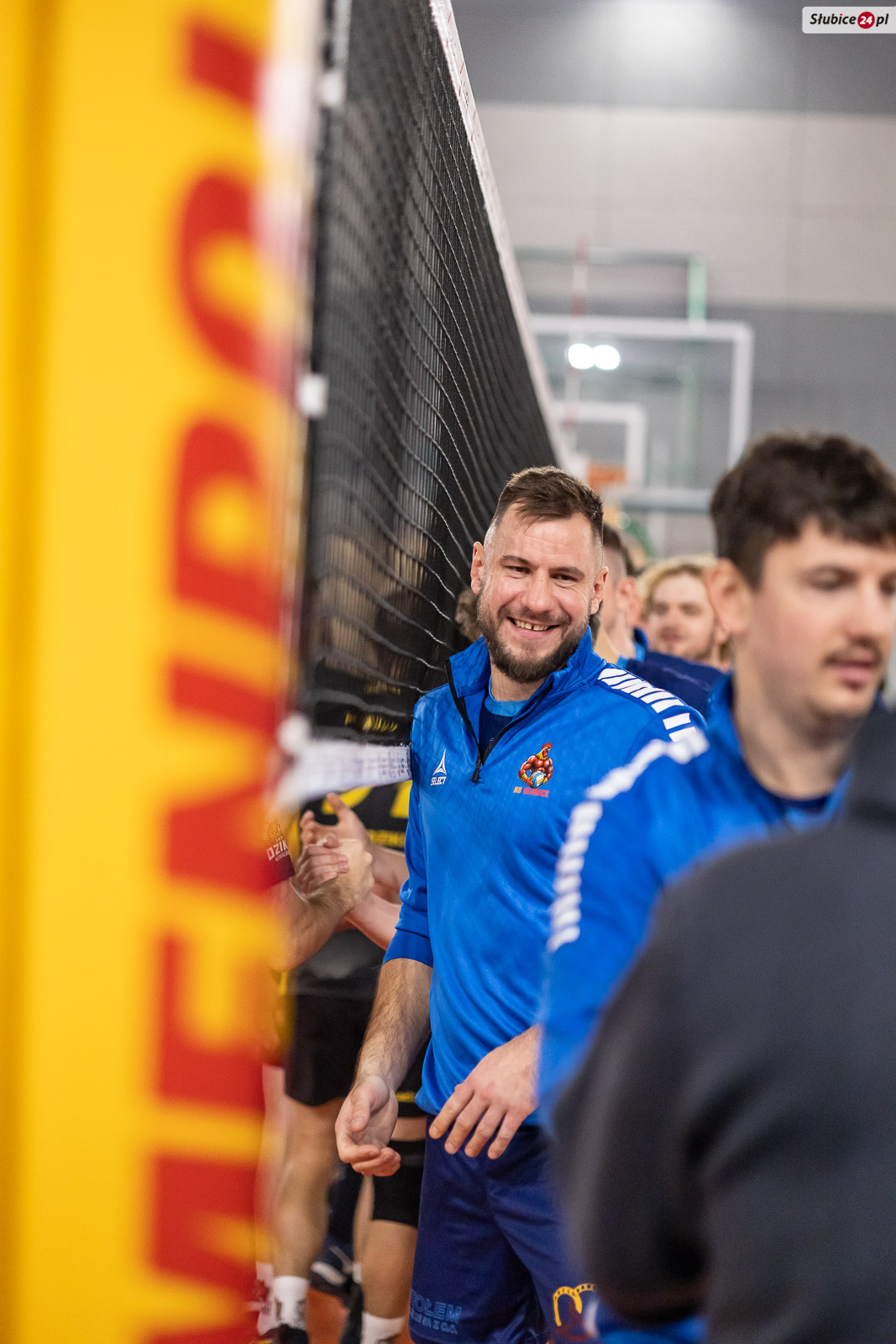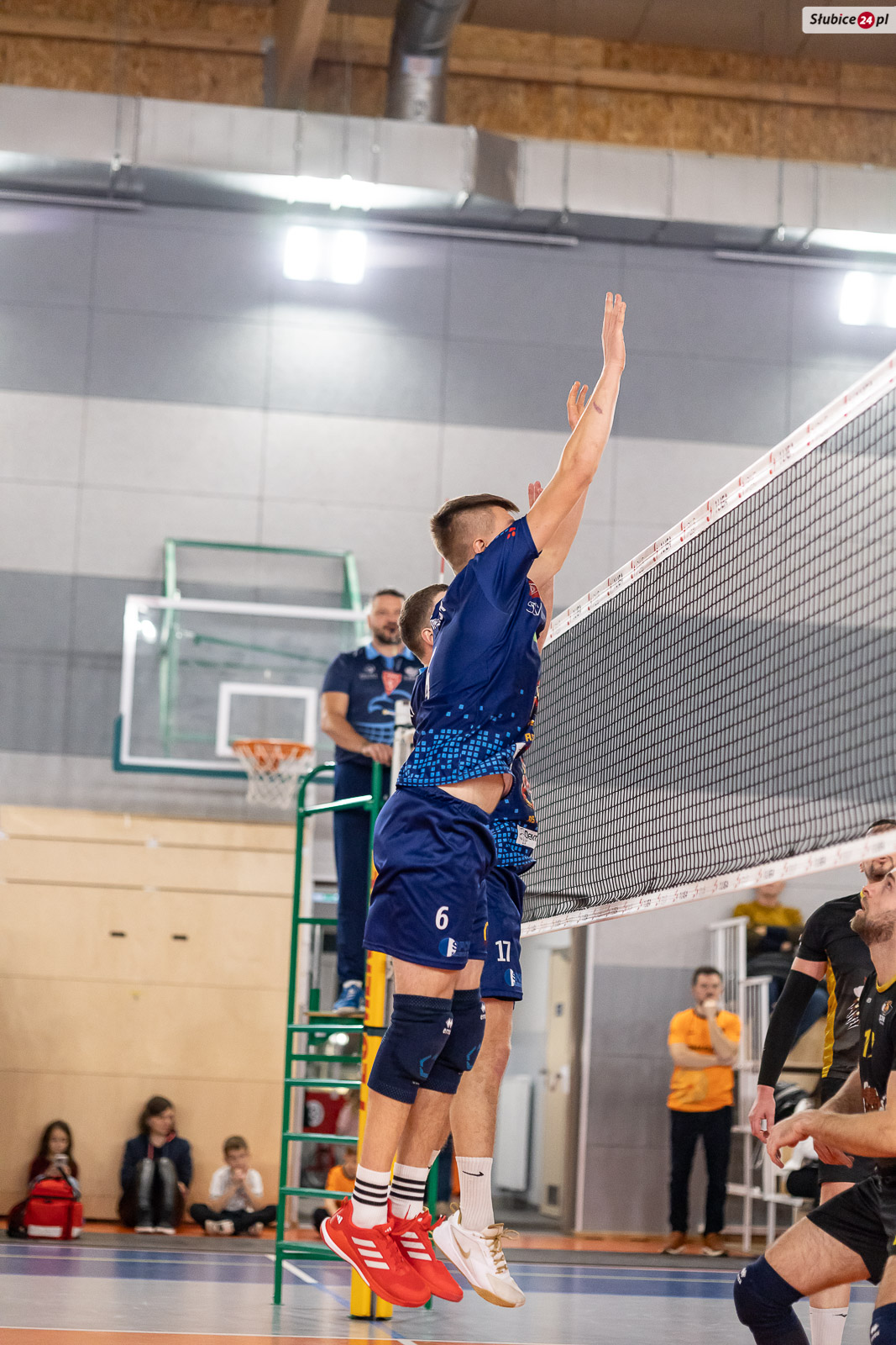 Pierwszy set pokazał, że żadna z drużyn nie zamierza odpuszczać, co doprowadziło do gry na przewagi. Ostatecznie pierwszą partię wygrali podopieczni trenera Stanisława Szablewskiego 27:25. W dwóch kolejnych partiach to słubickie koguty przejęły pełną kontrolę i zwyciężyły pewnie 25:11 i 25:15.