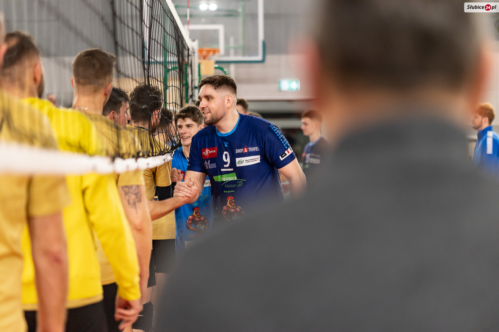 Spotkanie rozegrano 20 grudnia w hali Szkoły Podstawowej nr 2. Dla słubickiej drużyny był to rewanż za przegrany w tie-breaku mecz z początku sezonu. Tym razem słubickie koguty nie pozostawiły rywalom złudzeń – zwyciężyły w trzech setach, kolejno do 20, 12 i 23.