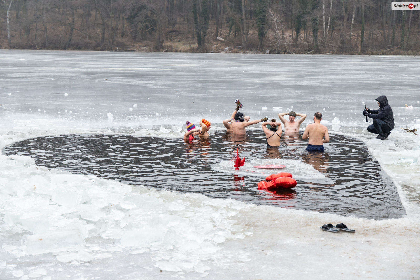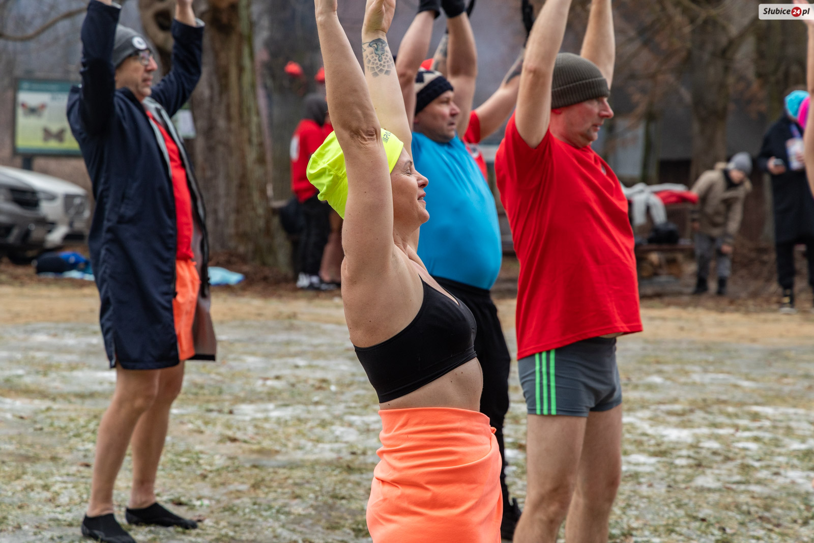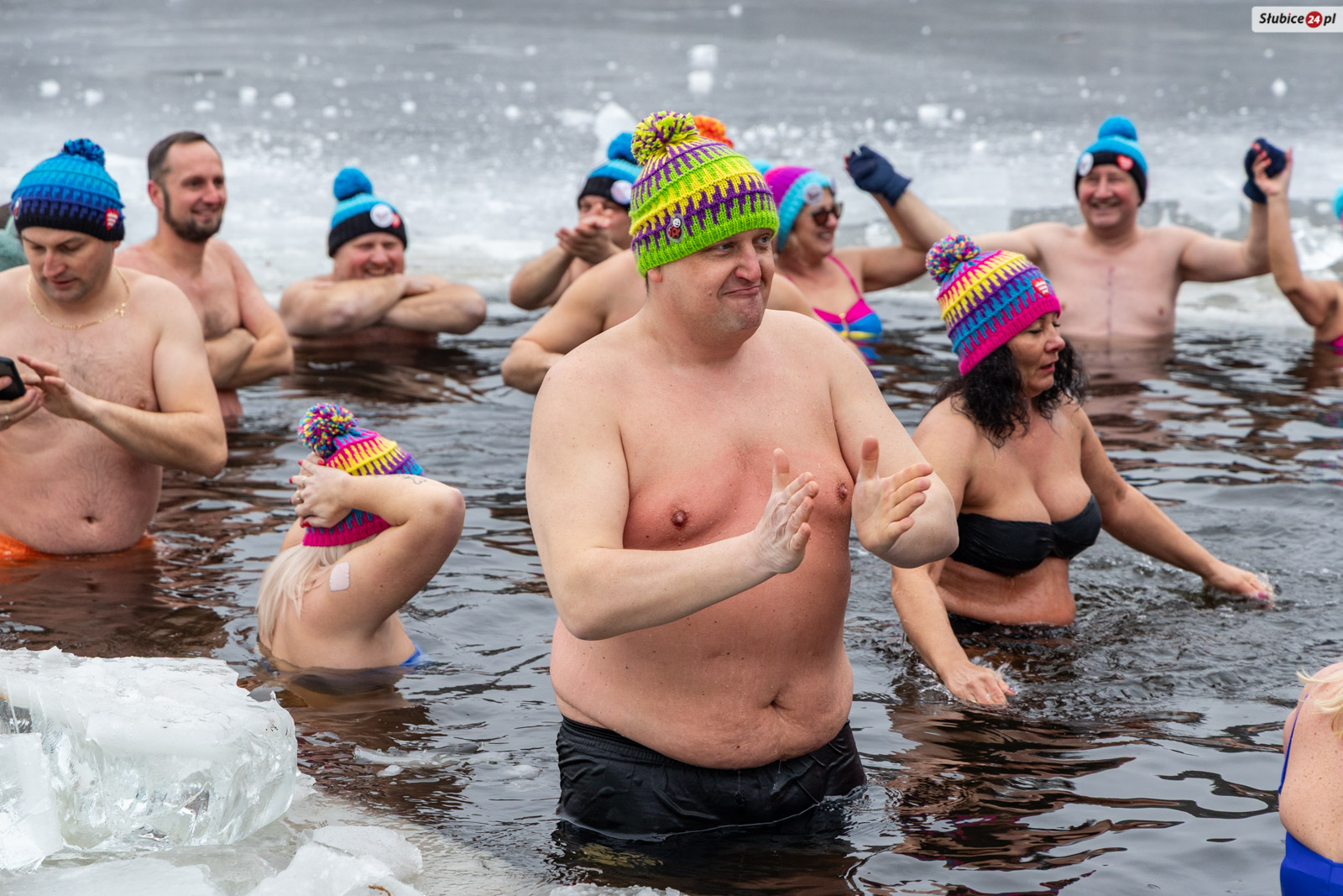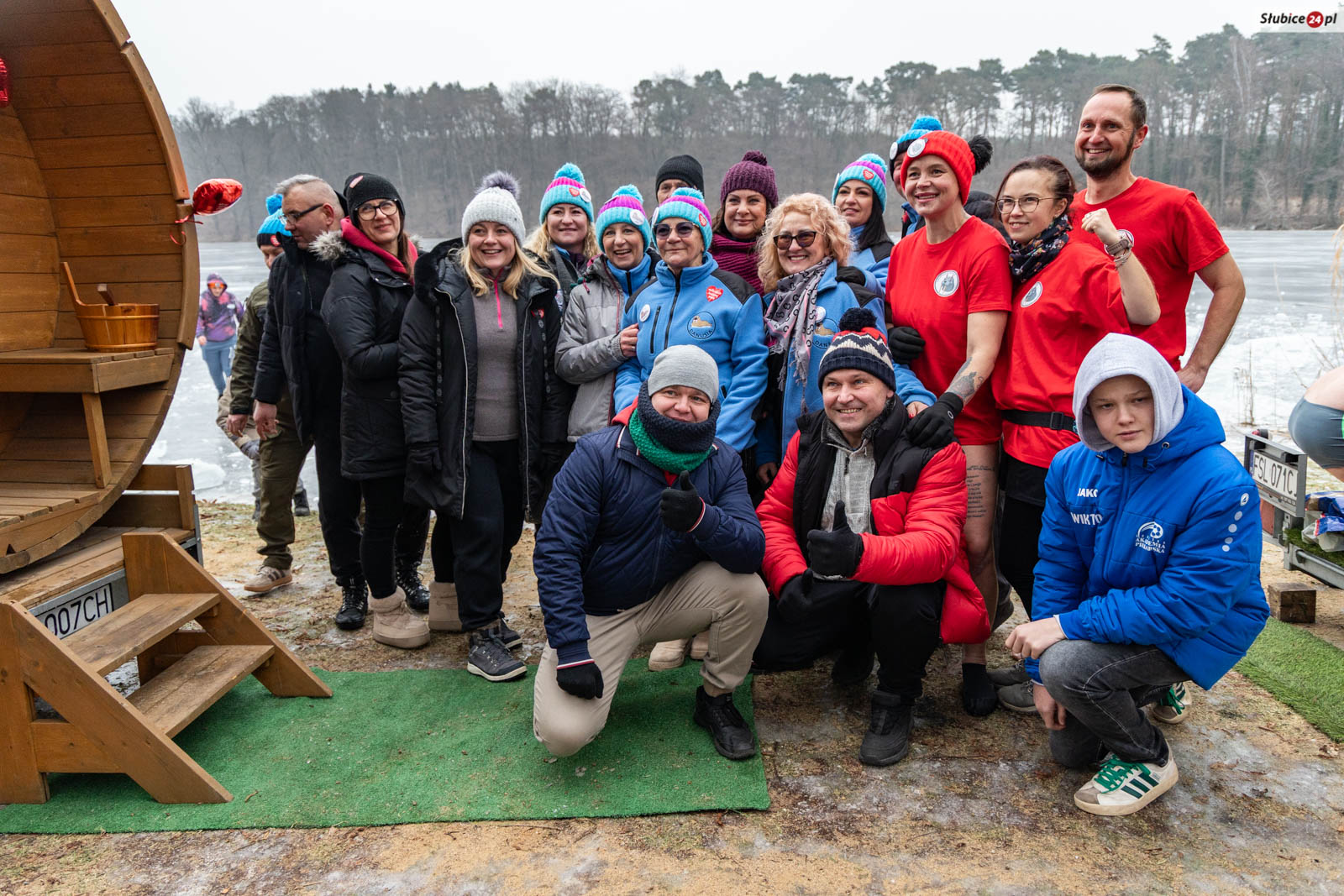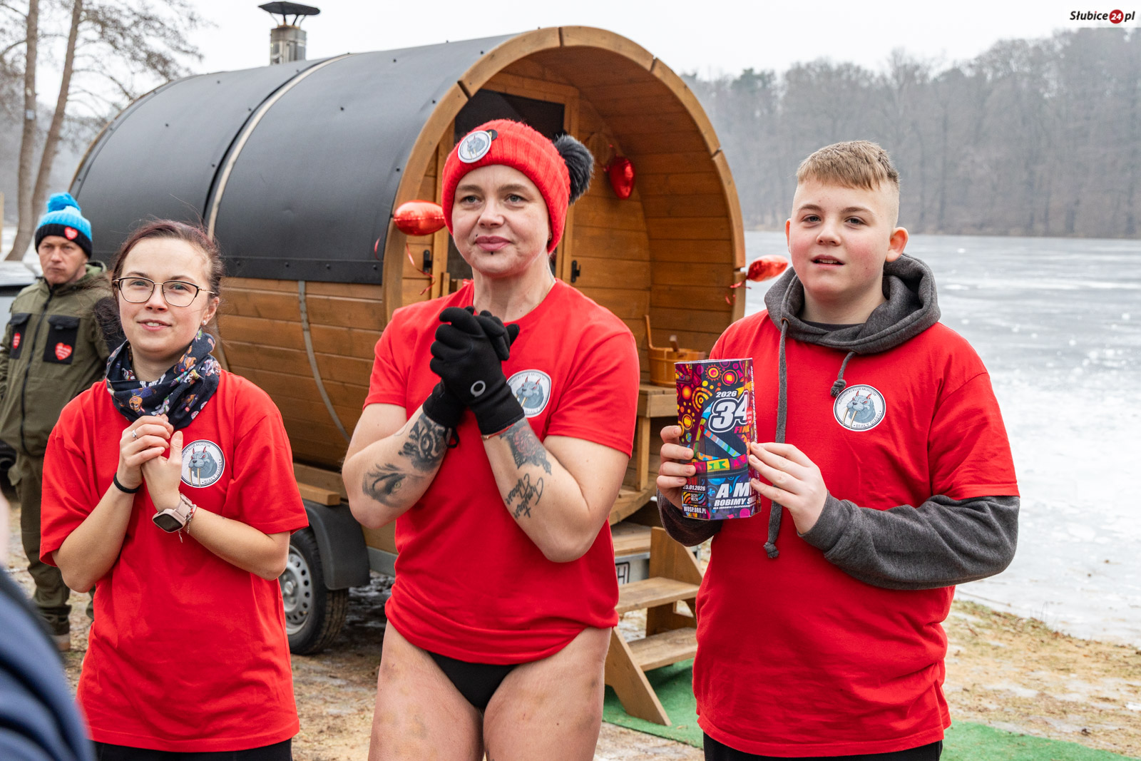 Przed lodowatą kąpielą rozgrzewkę poprowadził słubicki radny i wieloletni nauczyciel wychowania fizycznego Jarosław Sadowski. Następnie warunek był jeden – każdy uczestnik, zanim zanurzył się w jeziorze, musiał wrzucić datek do puszki WOŚP. Na wychodzących z zimnej wody na brzegu czekały dwie mobilne sauny, ognisko i poczęstunek – kiełbaski, ciasta i ciepłe napoje.