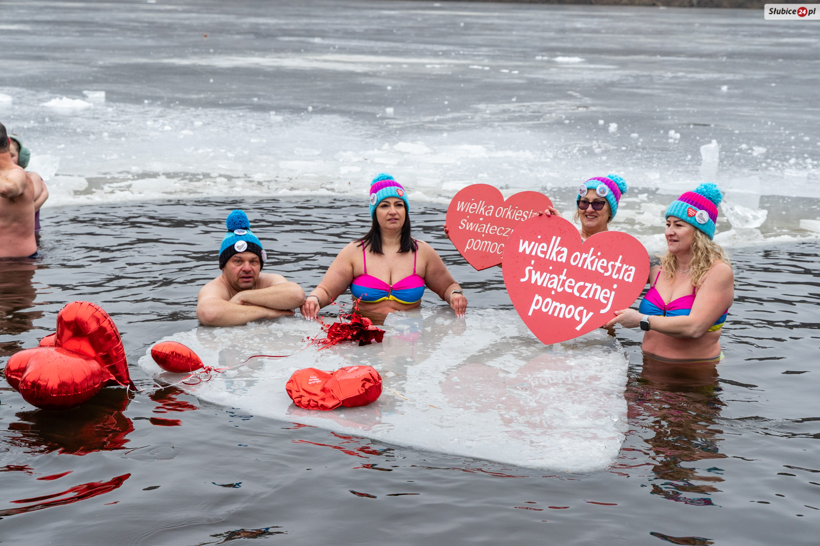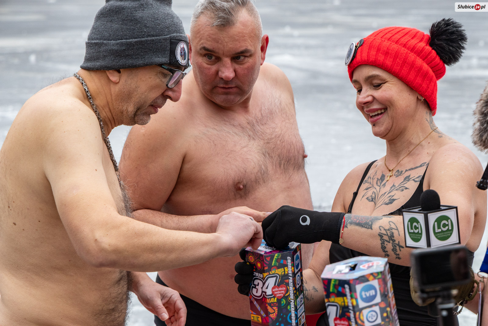 W tym roku aura dopisała: było mroźnie, a taflę jeziora pokrywała gruba warstwa lodu. Członkowie klubu wyrąbali w nim wielkie serce – symbol orkiestry. Na miejscu pojawili się też goście: burmistrzyni Słubic Marzena Słodownik, szef słubickiego sztabu WOŚP Dawid Magdulski, radni miejscy, druhowie z OSP Słubice oraz sympatycy zimowych kąpieli z Rzepina. Część z nich zdecydowała się wejść do lodowatej wody, inni wspierali wydarzenie swoją obecnością.