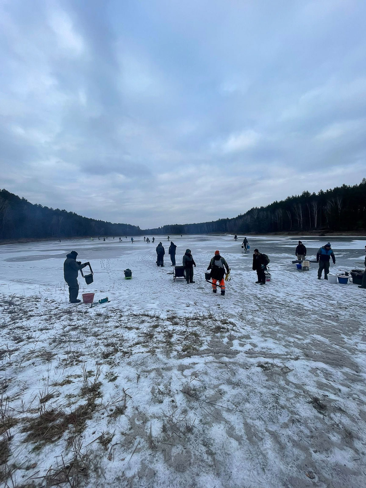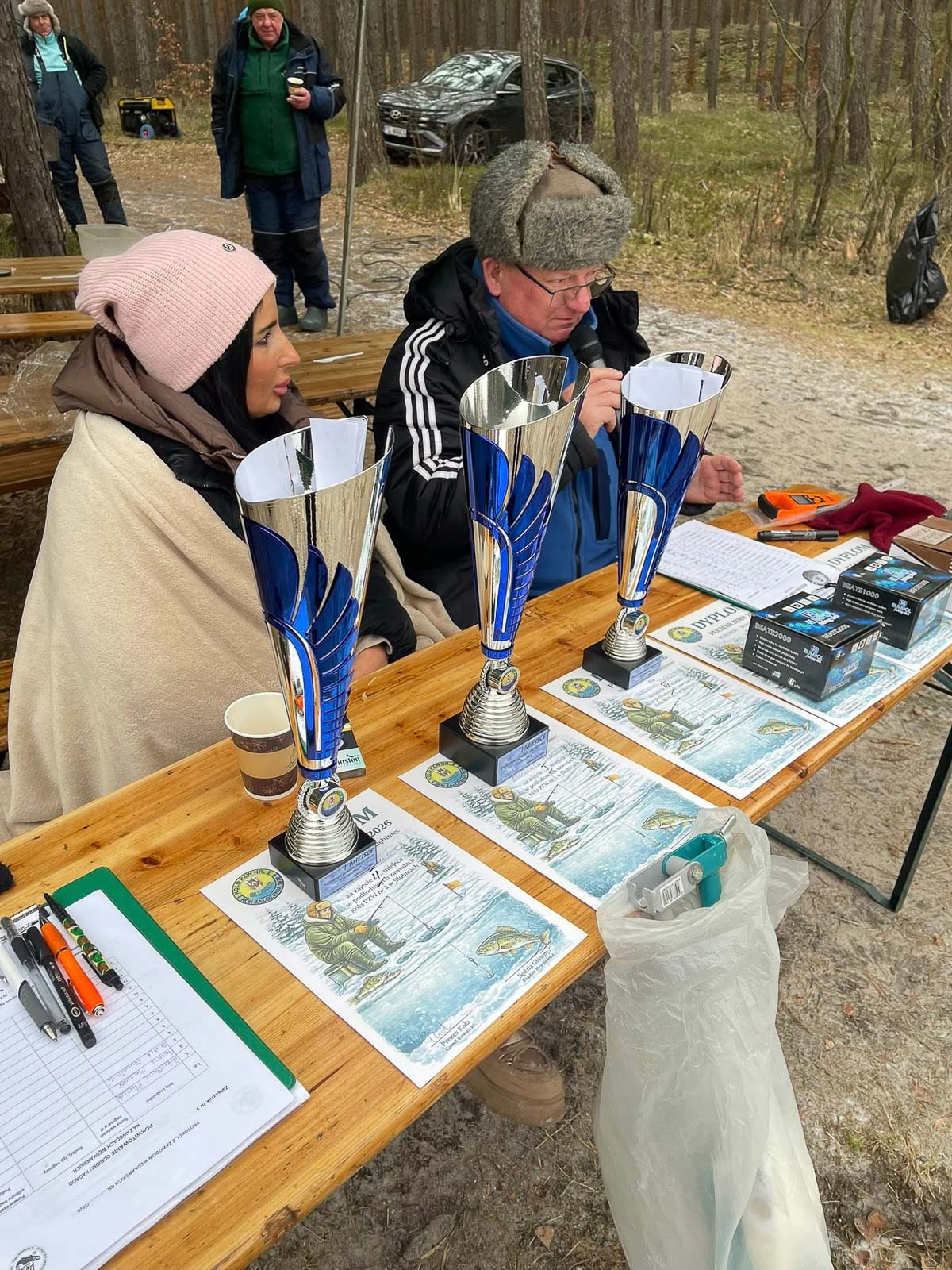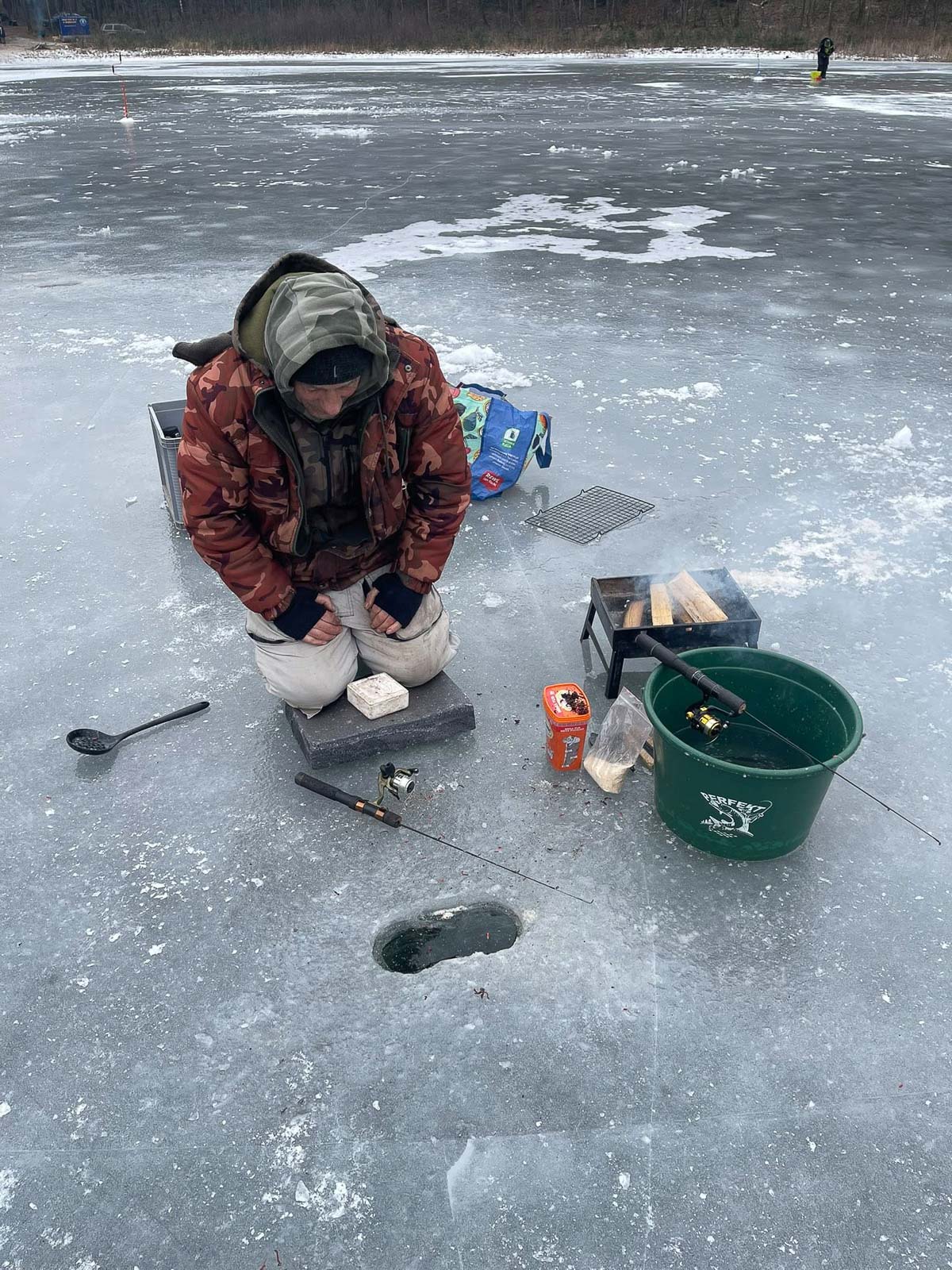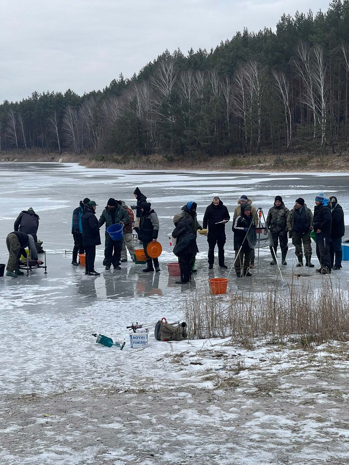 Temperatura sięgająca -9°C nie zniechęciła uczestników, którzy przez pięć godzin wytrwale szukali ryb pod lodem.