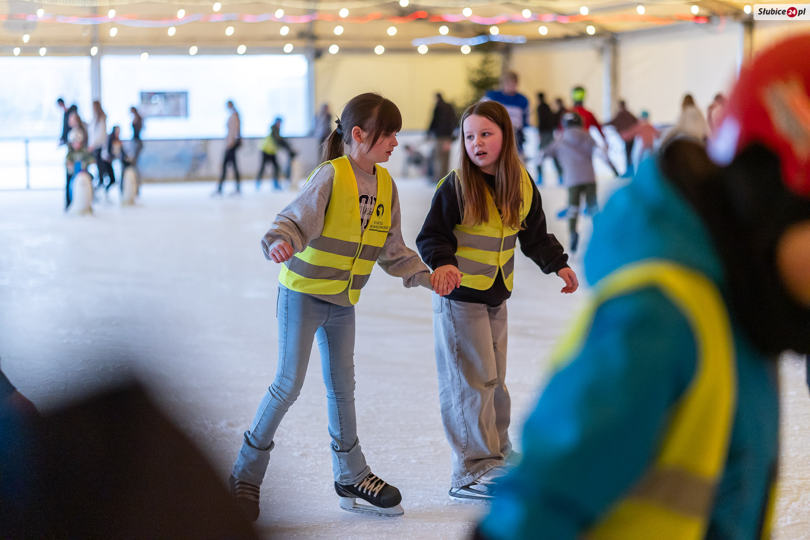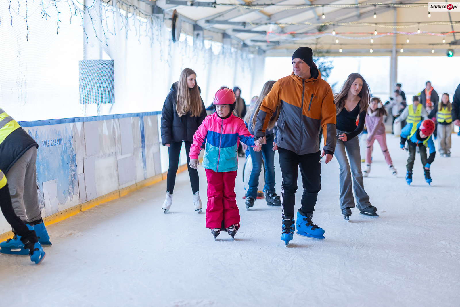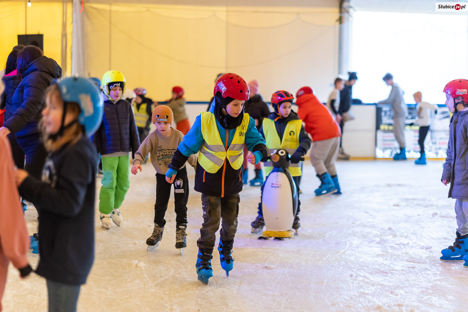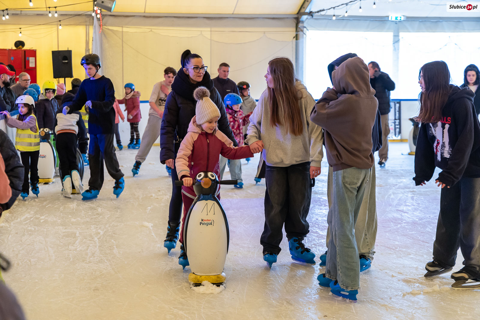 Na tafli nie brakowało chętnych. Z bezpłatnej tercji korzystały dzieci i młodzież, ale pojawiali się także dorośli – najczęściej jako opiekunowie, chociaż niektórzy również zakładali łyżwy i dołączali do najmłodszych. Dla wielu dzieci były to pierwsze próby na lodzie, więc dużym zainteresowaniem cieszyły się pingwinki, czyli specjalne podpórki do nauki jazdy.