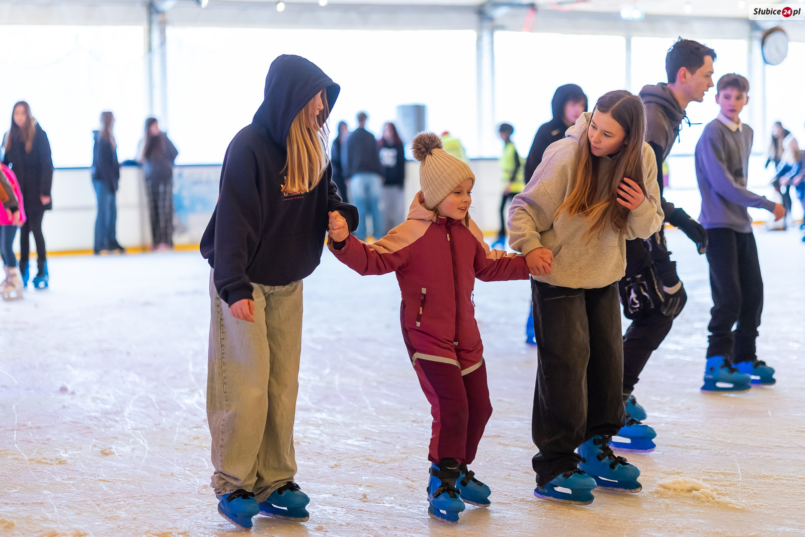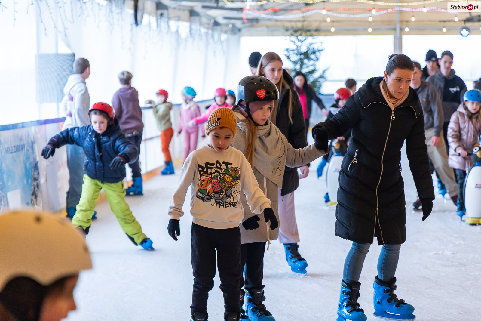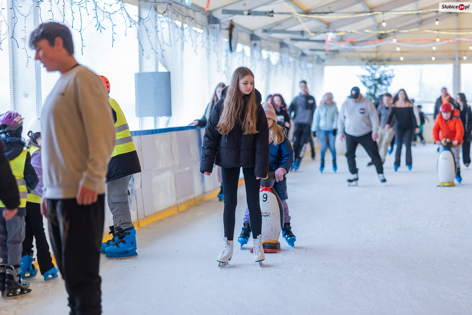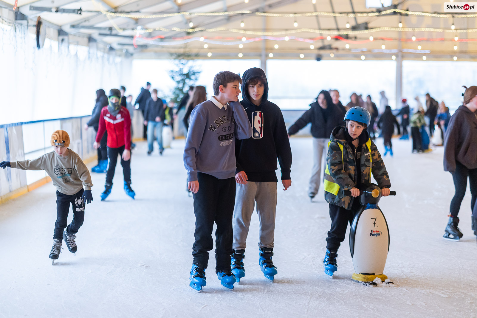 Na tafli nie brakowało chętnych. Z bezpłatnej tercji korzystały dzieci i młodzież, ale pojawiali się także dorośli – najczęściej jako opiekunowie, chociaż niektórzy również zakładali łyżwy i dołączali do najmłodszych. Dla wielu dzieci były to pierwsze próby na lodzie, więc dużym zainteresowaniem cieszyły się pingwinki, czyli specjalne podpórki do nauki jazdy.