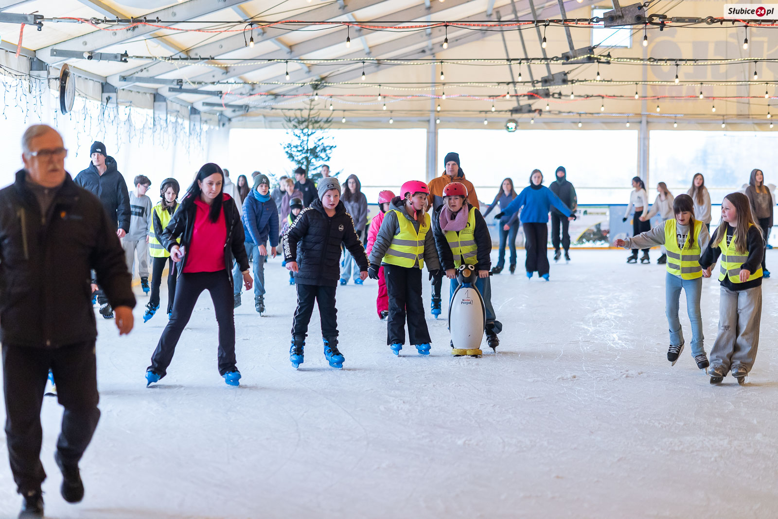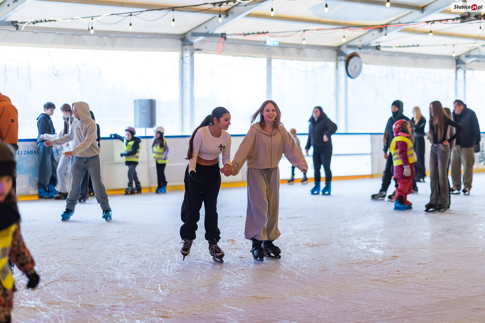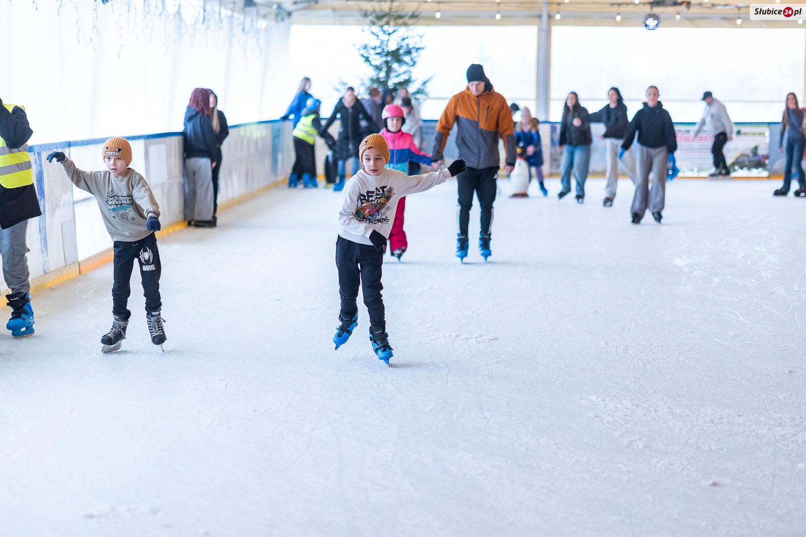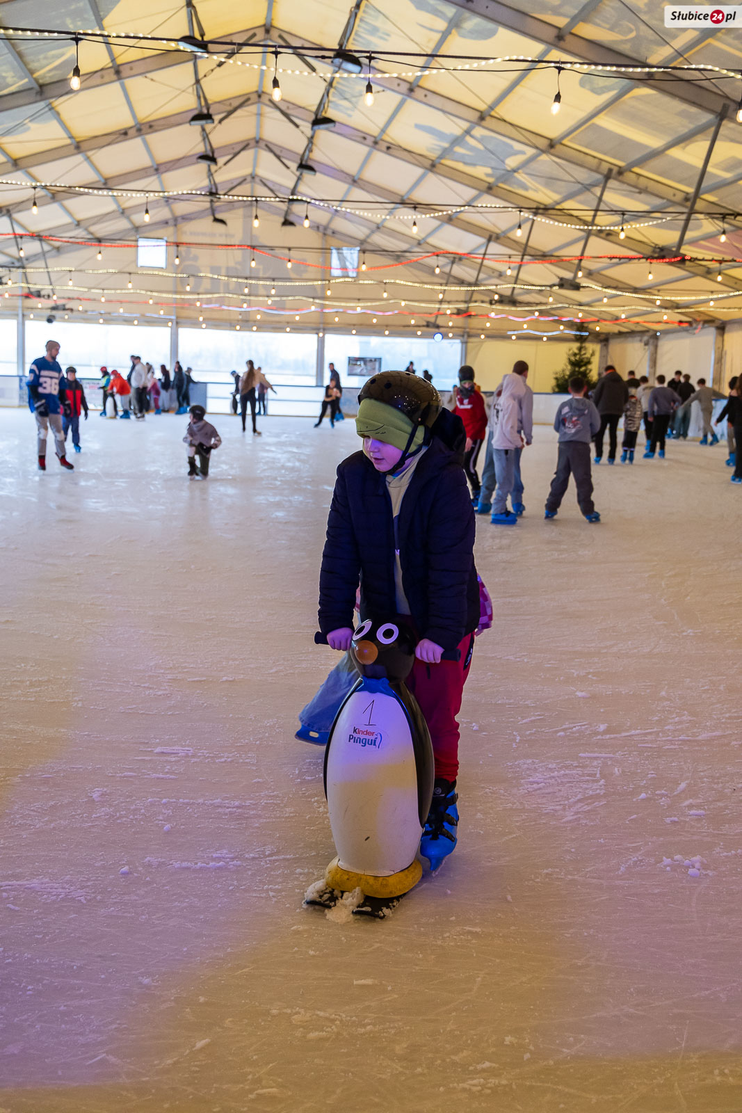 Na tafli nie brakowało chętnych. Z bezpłatnej tercji korzystały dzieci i młodzież, ale pojawiali się także dorośli – najczęściej jako opiekunowie, chociaż niektórzy również zakładali łyżwy i dołączali do najmłodszych. Dla wielu dzieci były to pierwsze próby na lodzie, więc dużym zainteresowaniem cieszyły się pingwinki, czyli specjalne podpórki do nauki jazdy.