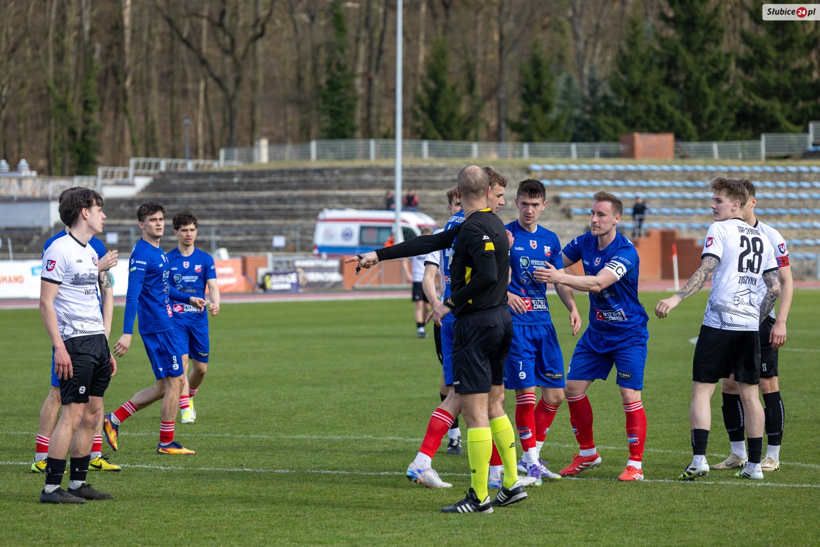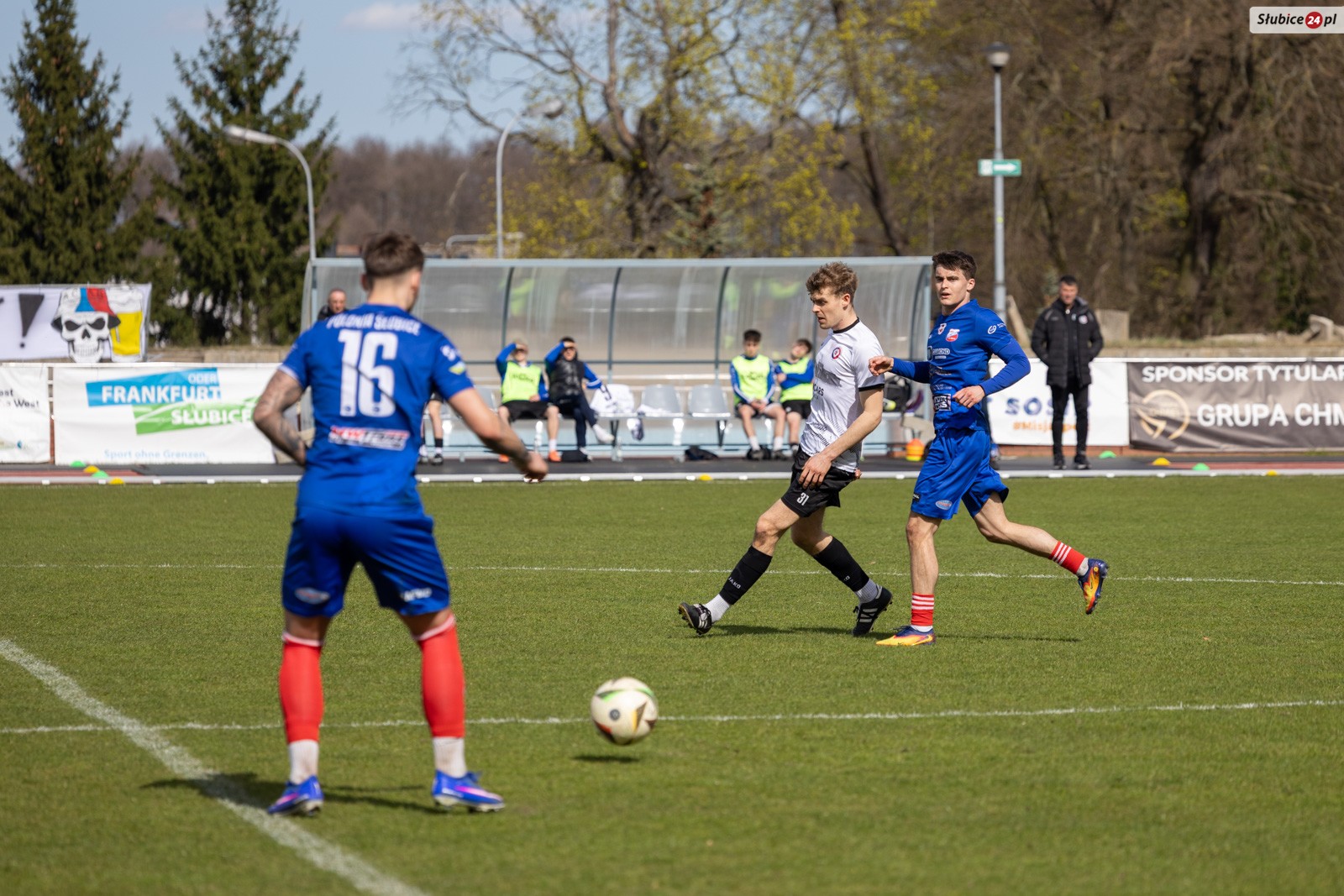 Początek spotkania nie należał do łatwych. Goście długo stawiali opór, a na boisku nie brakowało spięć, twardej gry i fauli. Z czasem jednak Słubiczanie zaczęli przejmować inicjatywę, co przełożyło się na bramki jeszcze przed przerwą.