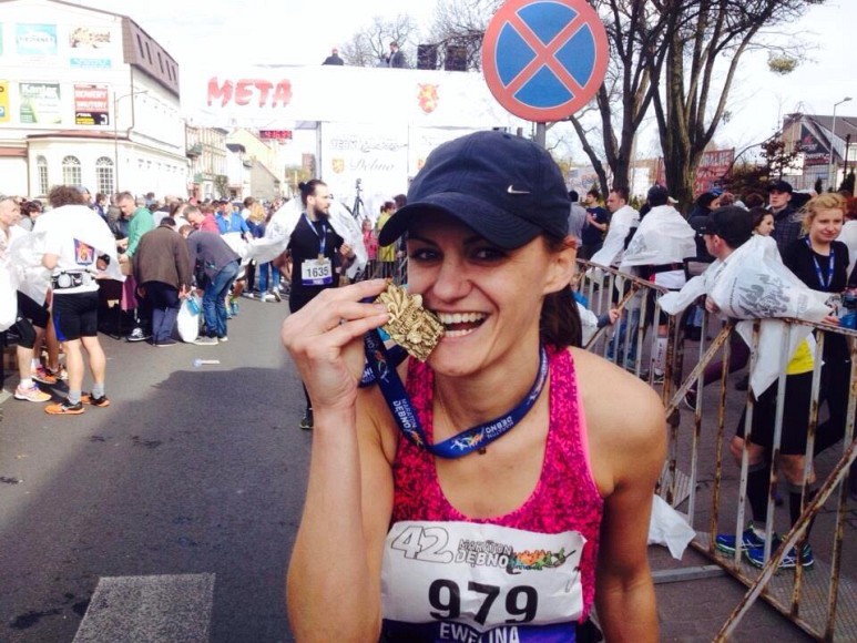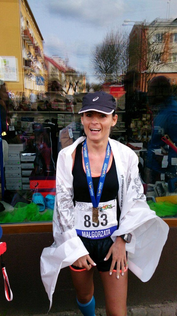 Największy respekt wzbudziła we mnie 68-letnia pani Irena Lasota, którą tuż przed biegiem spotkałyśmy w szatni. Zaintrygowała mnie jej bardzo dobrze zorganizowana i spakowana torba, więc nieśmiało zapytałam, który to już maraton. "To mój 303 maraton, ale liczę też te ultra" - skromnie odpowiedziała. Okazało się, że ma 68 lat i jako pierwsza Polka przebiegła w 1998 roku Spartathlon, czyli ultramaraton ze Sparty do Aten na dystansie 246 km!. Po takim spotkaniu aż głupio było po prostu nie dobiec, więc dodatkowo zmobilizowana w moim debiucie dotarłam na metę :)