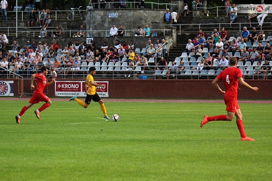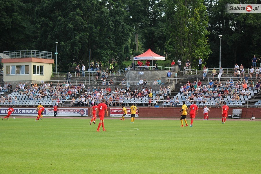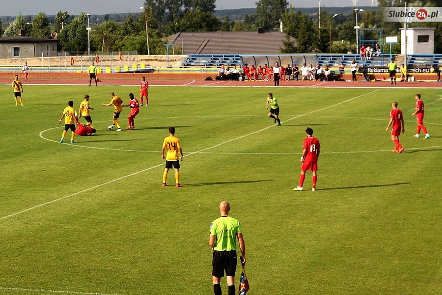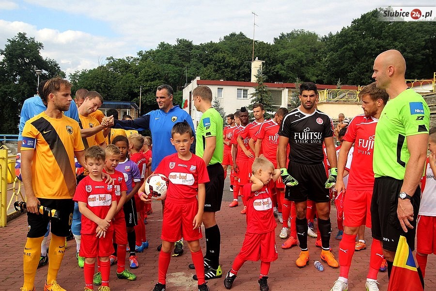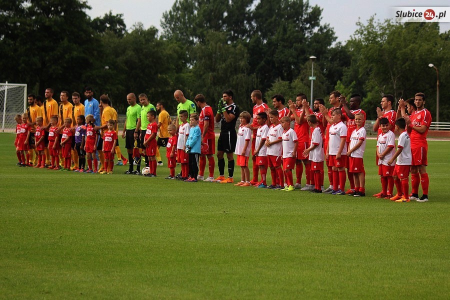 Miłym akcentem była obecność najmłodszych piłkarzy UKS Polonia Słubice, którzy towarzyszyli piłkarzom obu drużyn podczas wyprowadzenia na murawę.