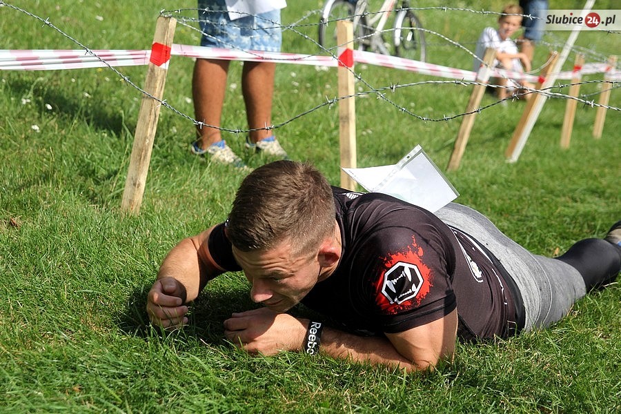 Największe wyzwanie dla uczestników - czołganie pod zasiekami