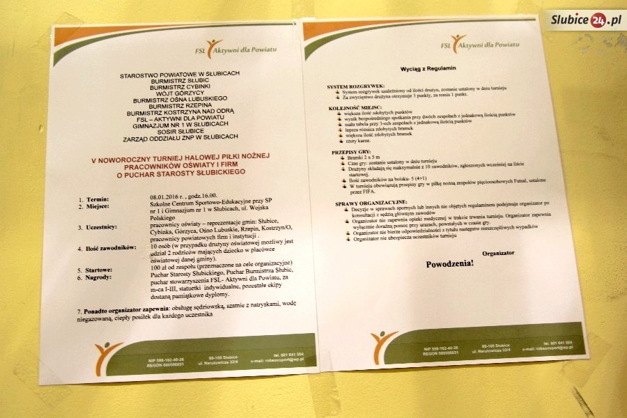 Głównymi organizatorami turnieju byli Robert Tomczak ze Stowarzyszenia FSL Aktywni dla Powiatu oraz Jacek Trojan z Gimnazjum nr 1 w Słubicach.
